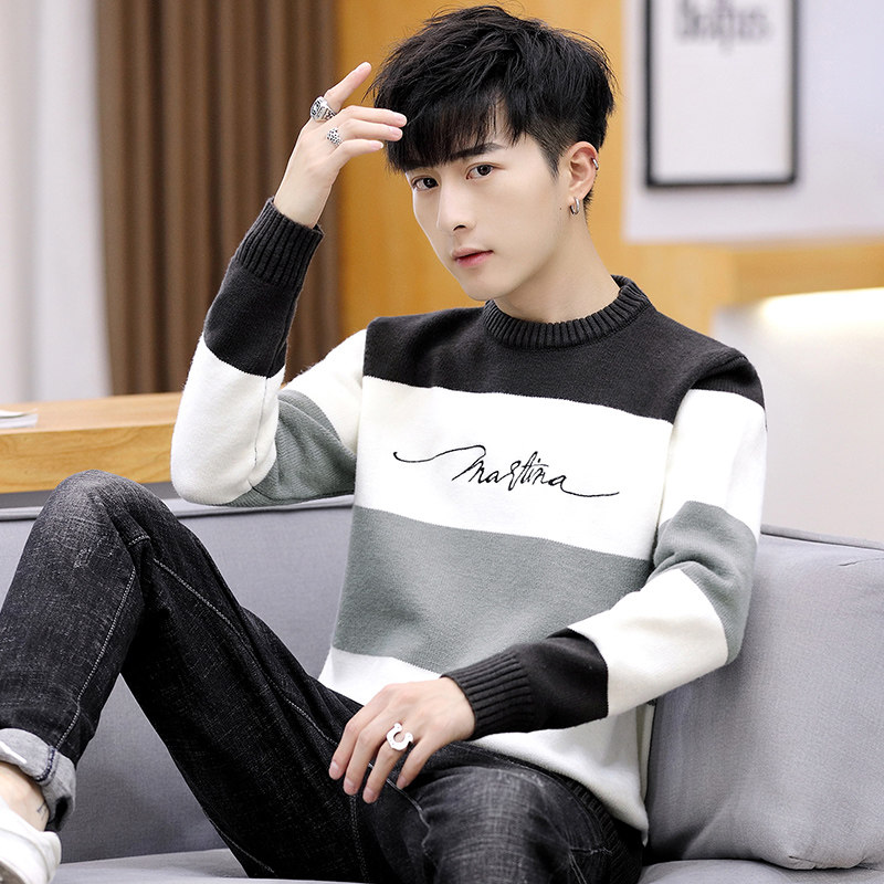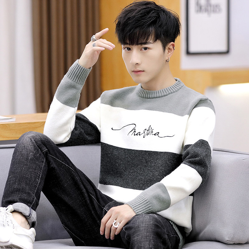 青少年厚款冬季毛衣男韩版宽松慵懒风潮流学生套头圆领打底针织衫