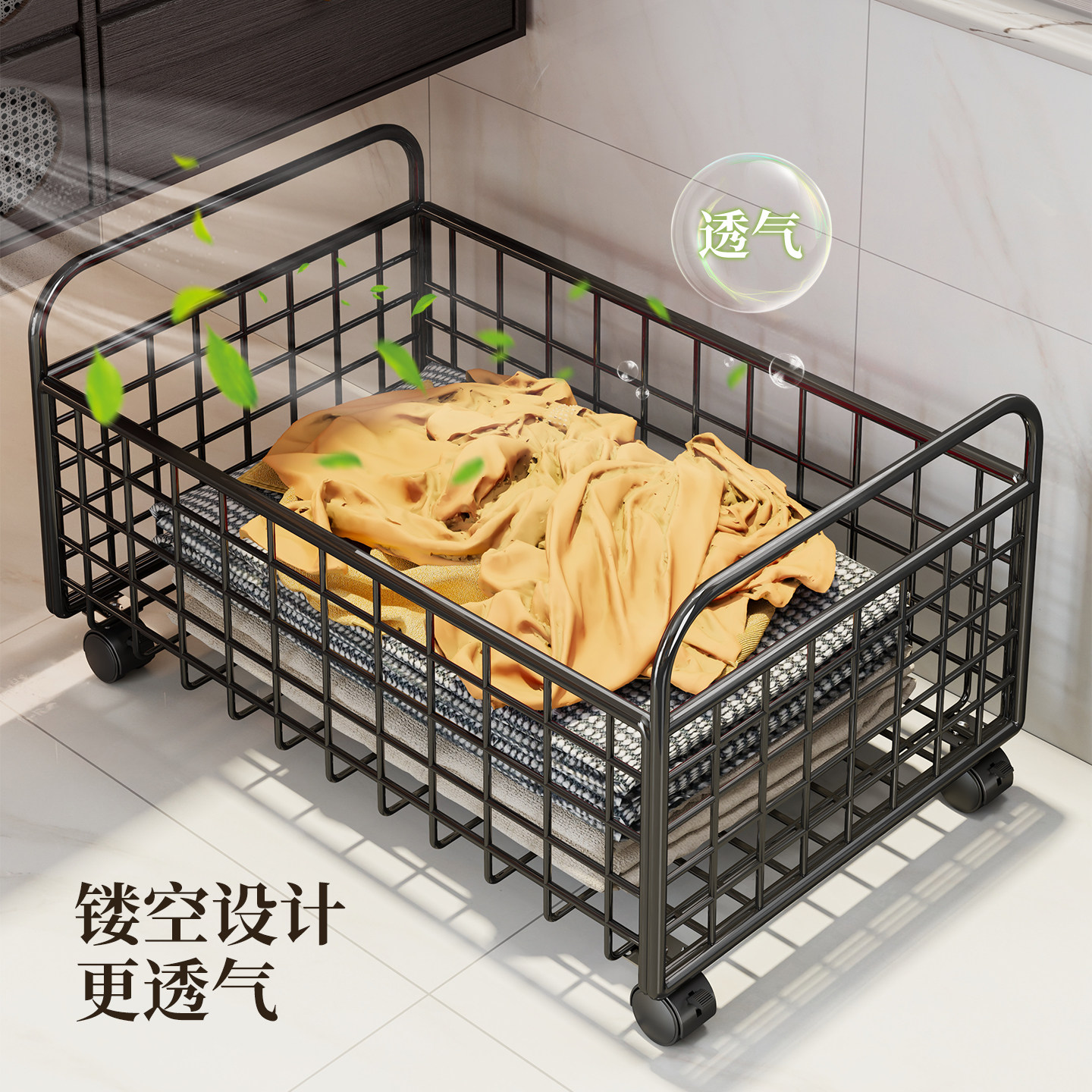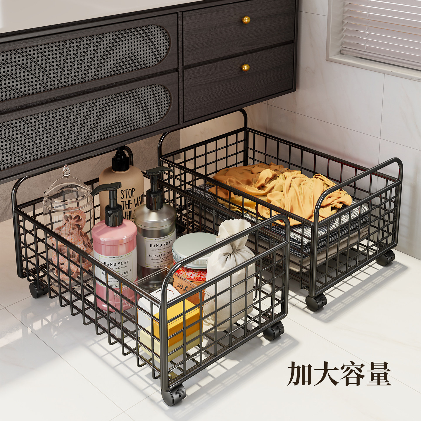 浴室柜下脏衣篓脏衣服收纳筐家用大容量带轮可移动洗衣篮子卫生间