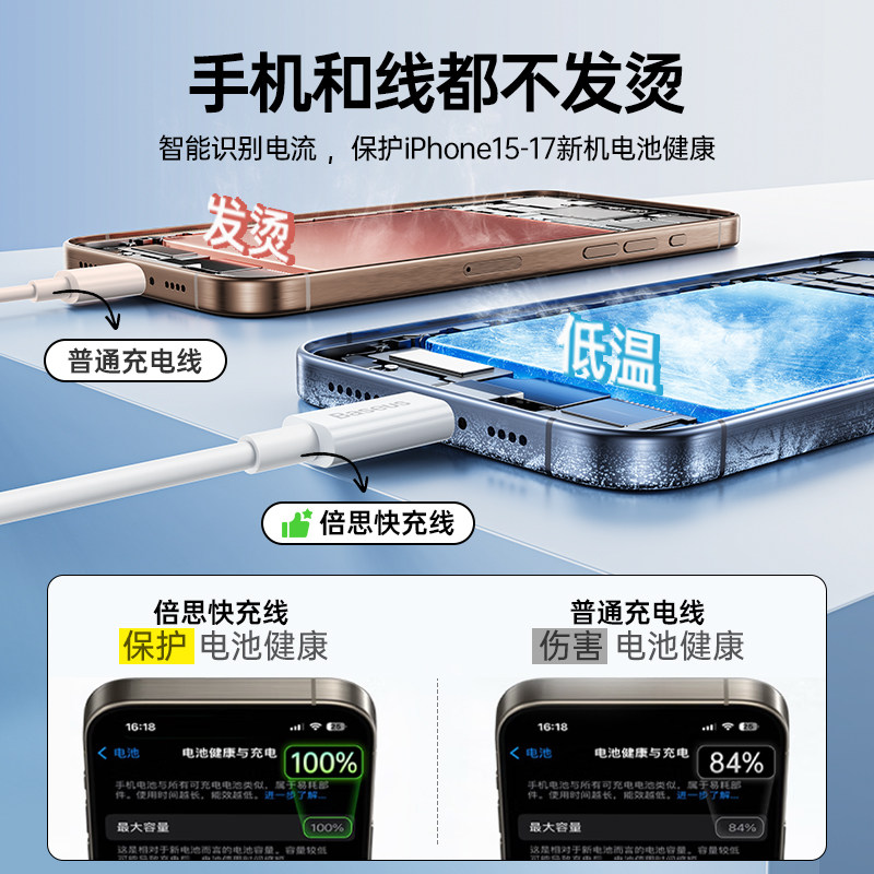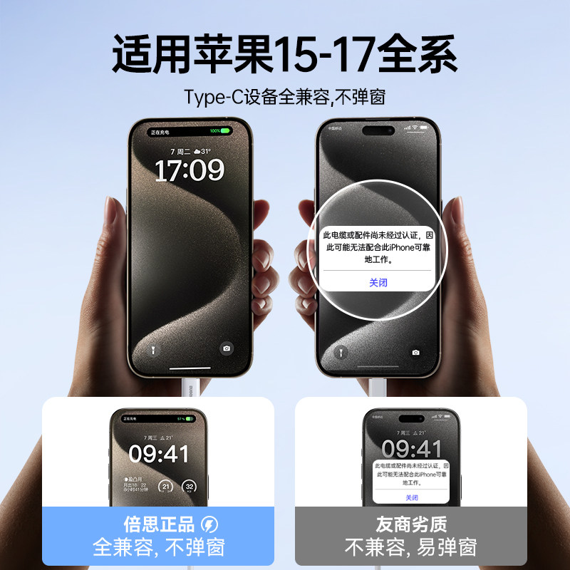 倍思适用苹果17充电线iphone16数据线车载CarPlay手机usb转typec充电器线promax车充airpods4手机15快充tpyec