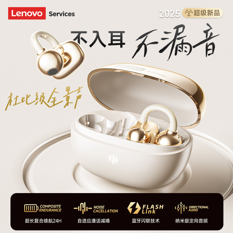 联想无线开放式蓝牙耳机运动降噪耳夹式长续航游戏低延迟RS103