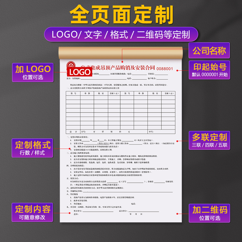 【全屋集成吊顶专用】订货单三联定制建材厂批发销售送货清单扣板订购合同石膏线条测量安装报价结算单订单本