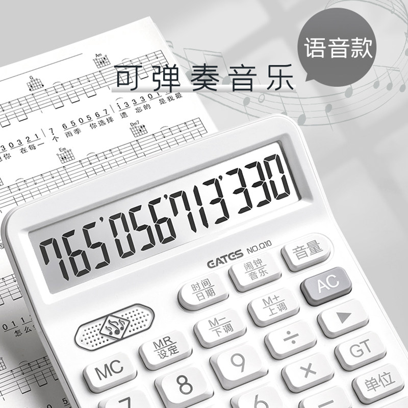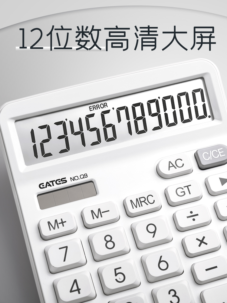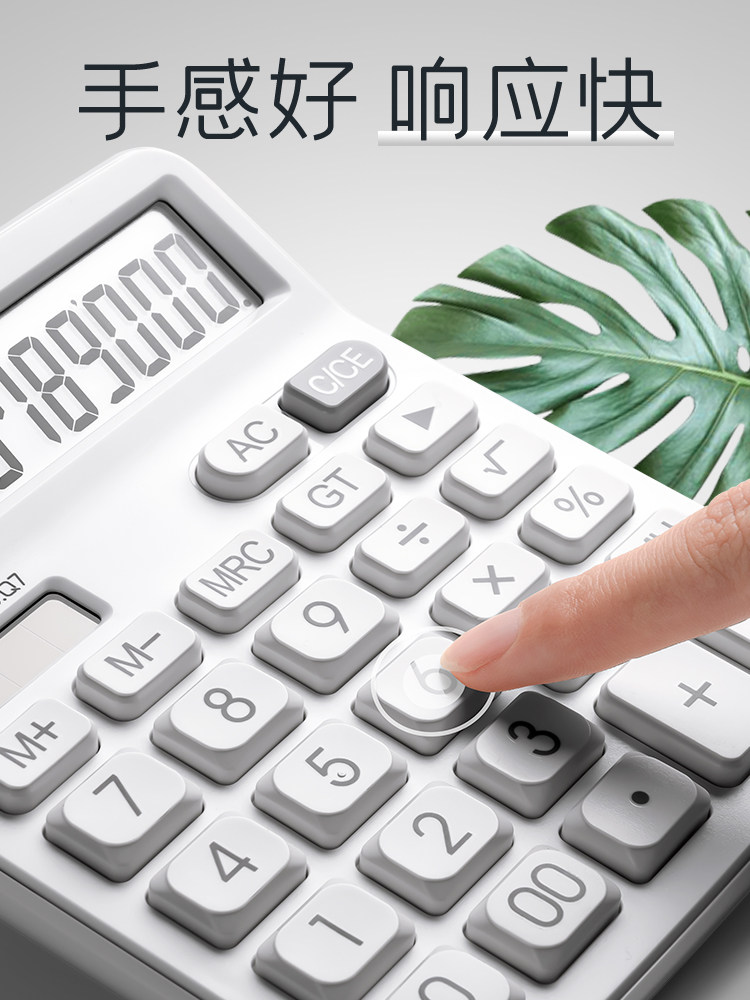 太阳能计算器纯白极简个性风高颜值12位高清大屏幕显示男女财务会计学生考试专用语音款真人发音报数手感舒适