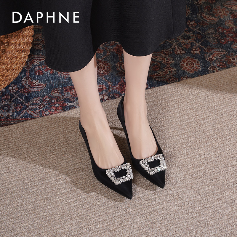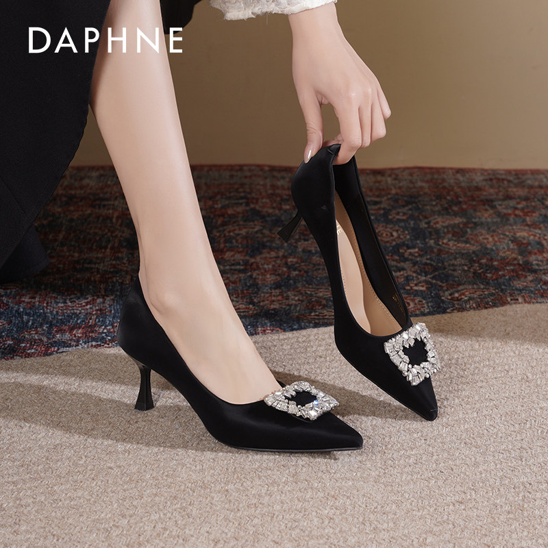 达芙妮黑色高跟鞋女2026新款鞋子女职业工作鞋尖头不累脚细跟单鞋
