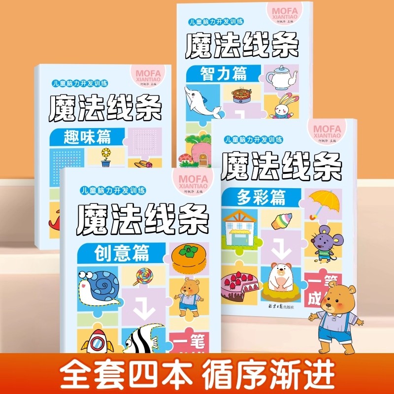 儿童脑力开发魔法线条全4册专注力大挑战左右脑思维训练3-6岁幼儿益智思维逻辑少连线画涂色画描红小说名著正版旅行漂流鲁滨逊汤姆