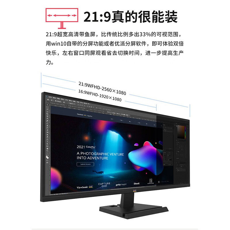 优派29英寸21:9带鱼屏HDR高清IPS屏电脑台式液晶显示器VA2962-HD