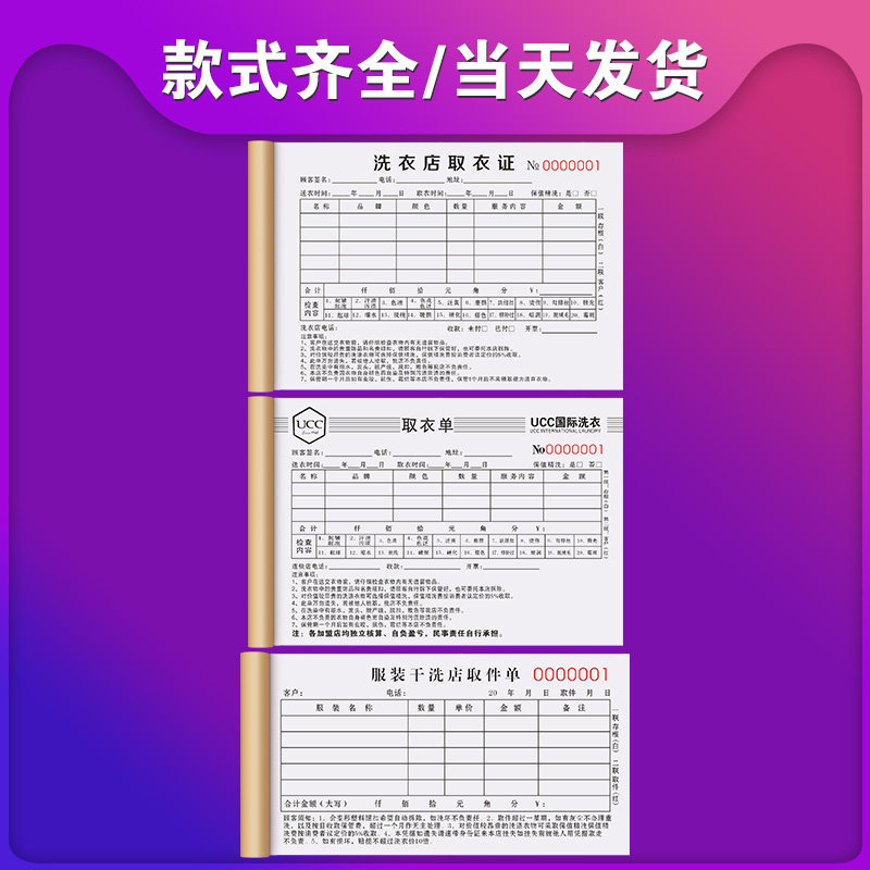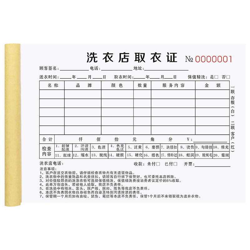洗衣店取衣单定制洗鞋房登记表布草送洗记账本改衣做衣服收据票洁丰衣物取件单良家收衣开单本服装干洗店票据