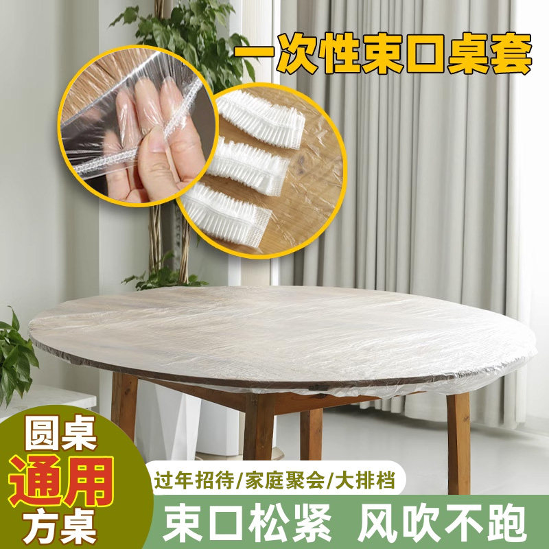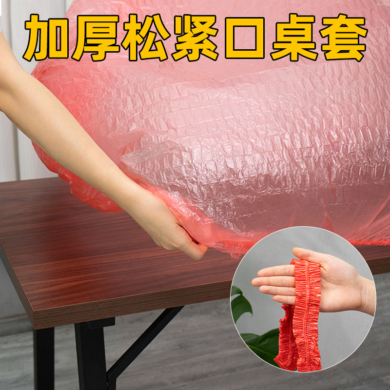 松紧束口桌布一次性家用加厚加大免洗透明红餐馆饭店酒席婚庆桌套