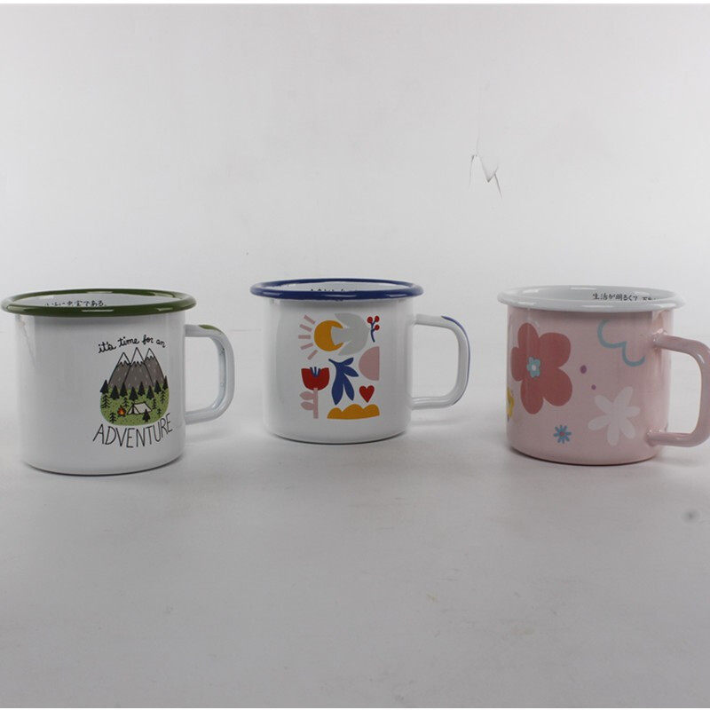潮流现代搪瓷日系家用珐琅搪瓷杯可爱儿童水杯情侣咖啡牛奶马克杯
