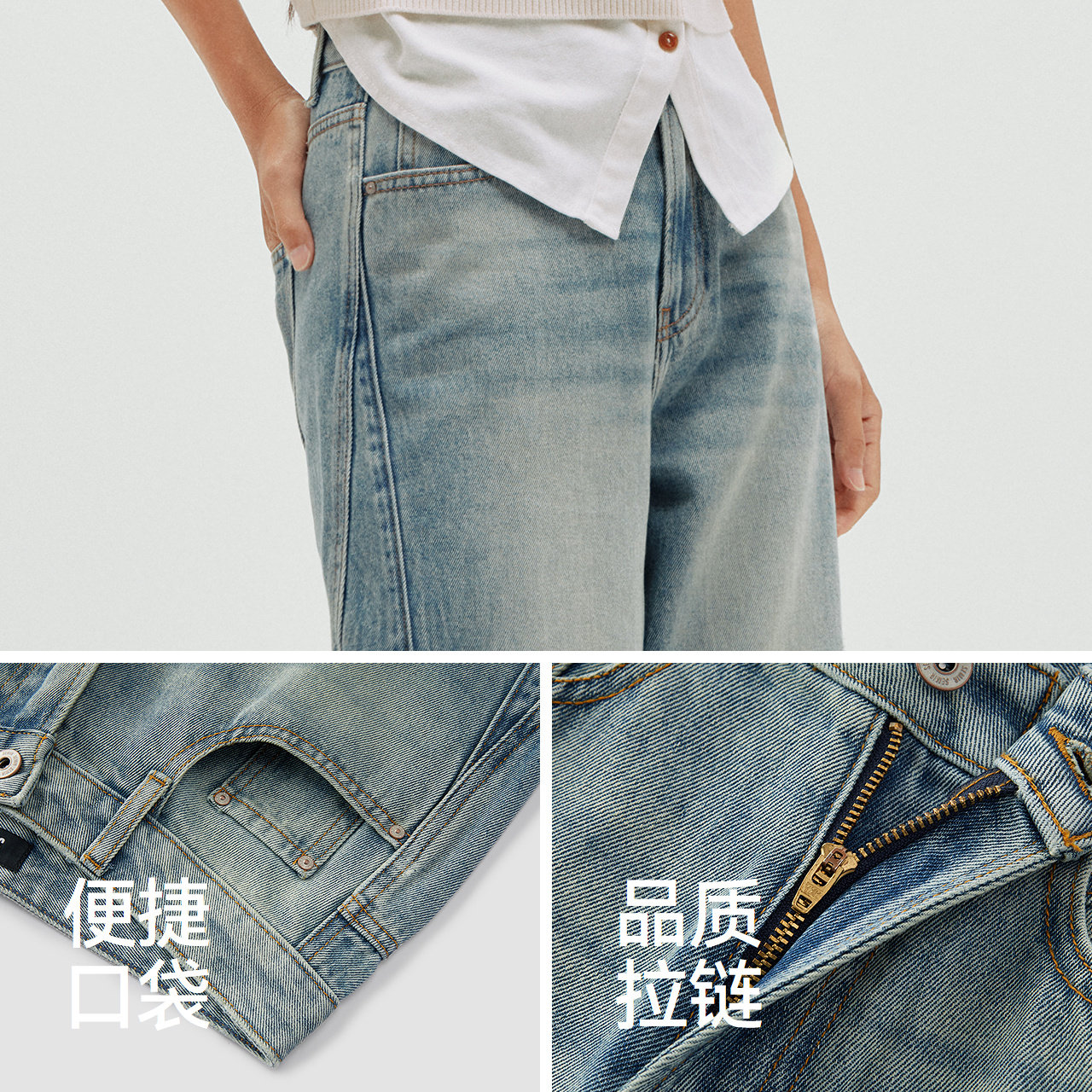 裤侧拼接层次立显 做旧复古潮流感