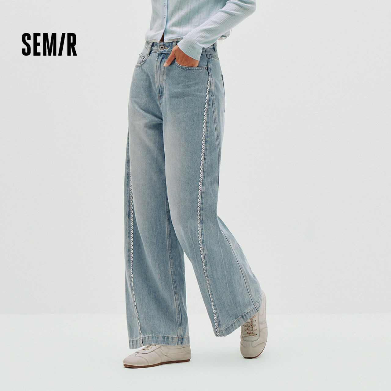 森柔|商场同款森马牛仔裤女春季拼接阔腿裤2026新款复古时尚长裤