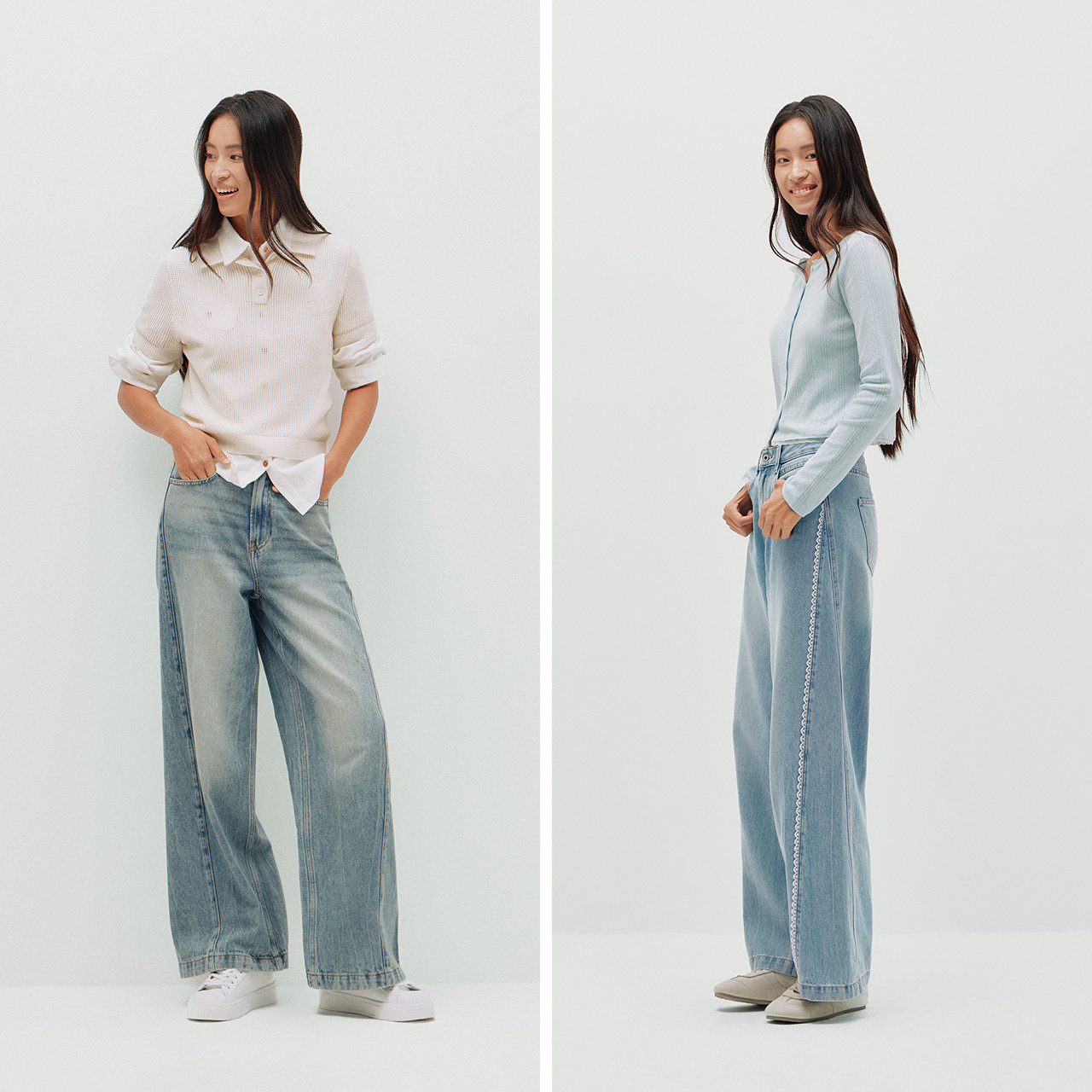 森柔牛仔|森马阔腿牛仔裤女2025秋冬白色牛仔裤简约女士高腰裤子