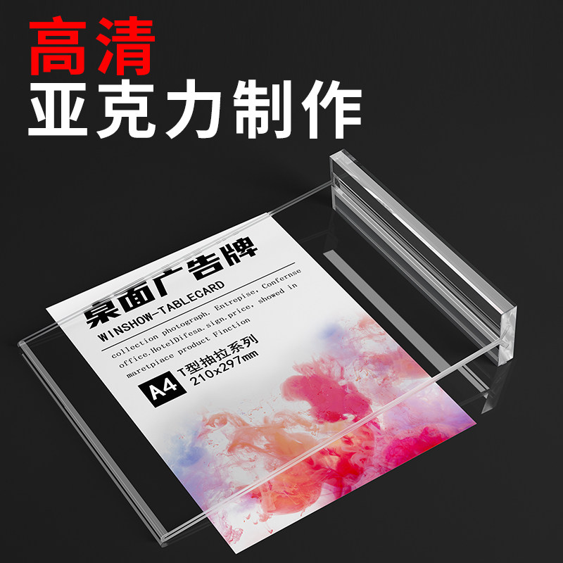亚克力台卡桌牌双面透明立牌a4抽拉强磁台签展示牌A5桌卡个性创意A6餐牌酒水晶定制菜单广告价目表T型展示架L