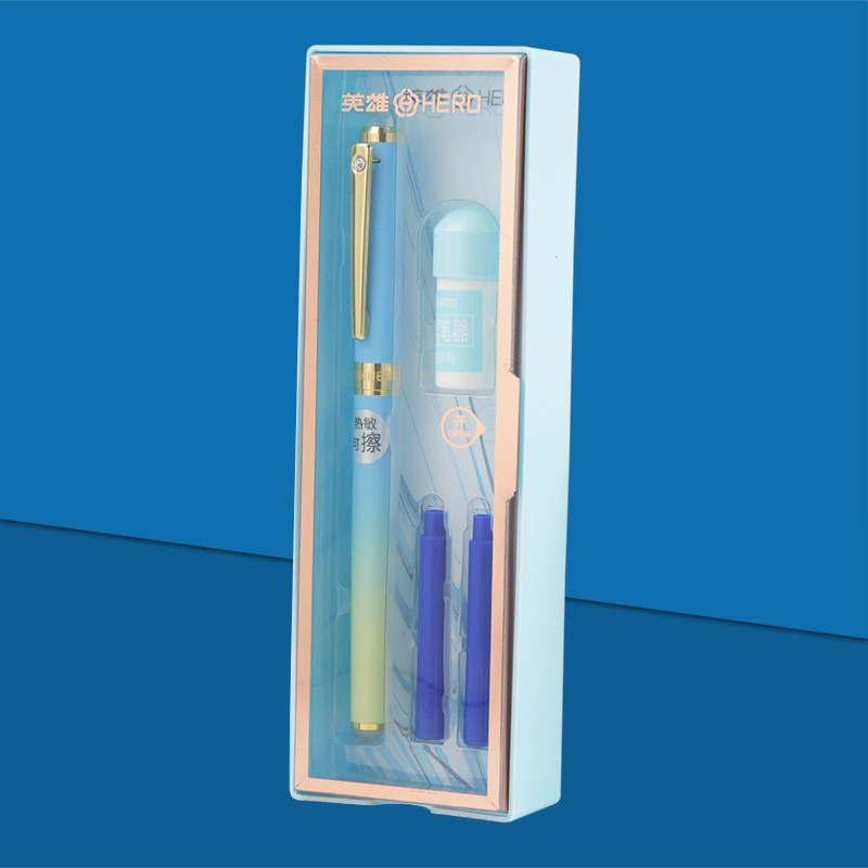 HERO/英雄钢笔小学生专用0.5三年级可擦儿童热敏替换墨囊正姿练字四年级上册蓝黑暗尖魔力擦神器吸墨包尖刻字