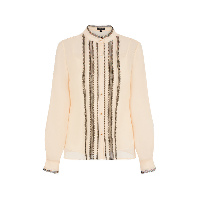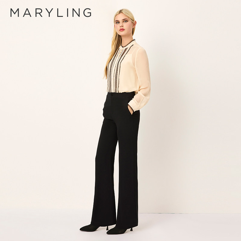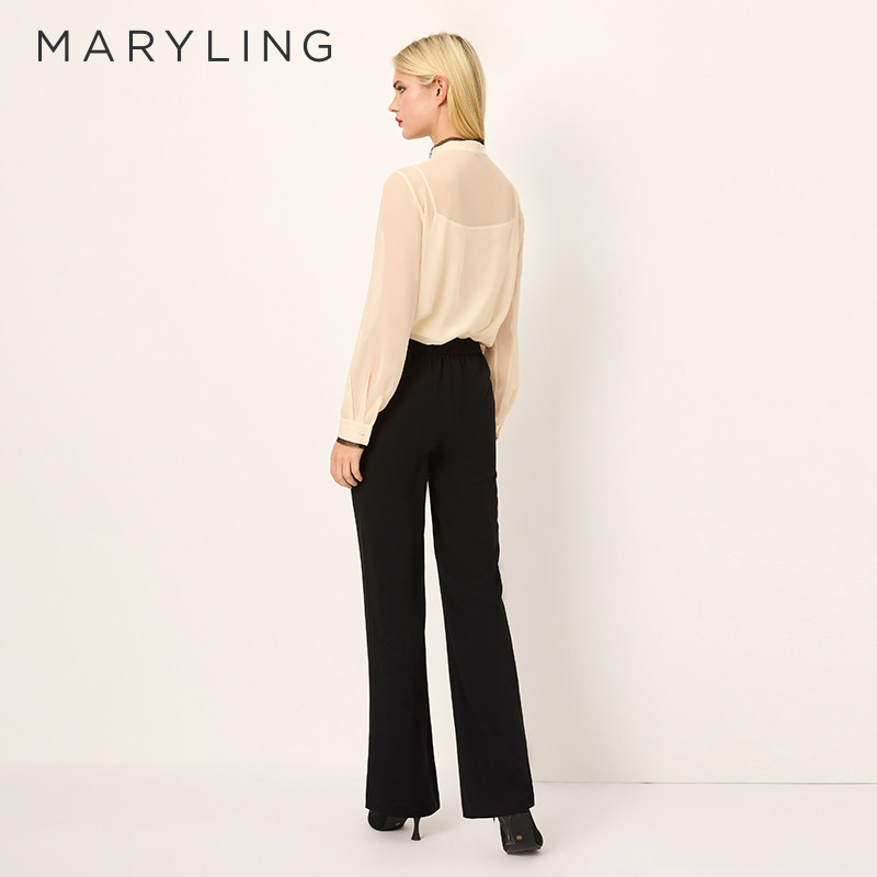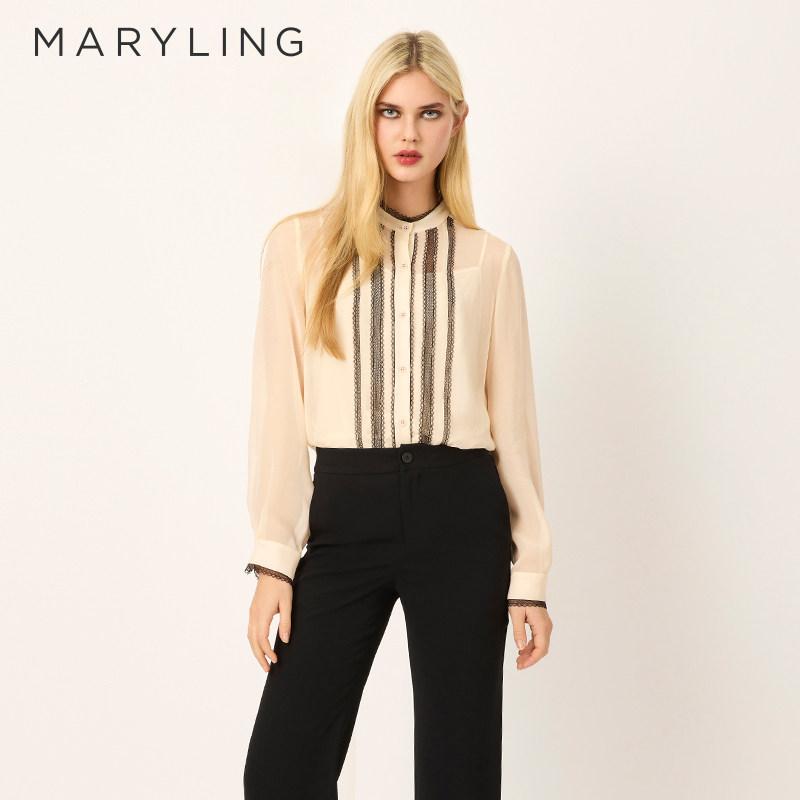 MARYLING玛俪琳2025夏季新品杏色撞色真丝长袖衬衫A1FCW20440