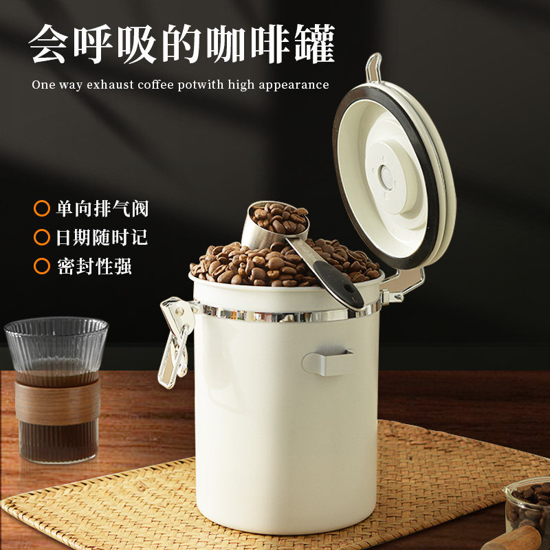 不锈钢咖啡豆密封罐真空单向排气保存罐储存收纳储豆罐养豆储存罐