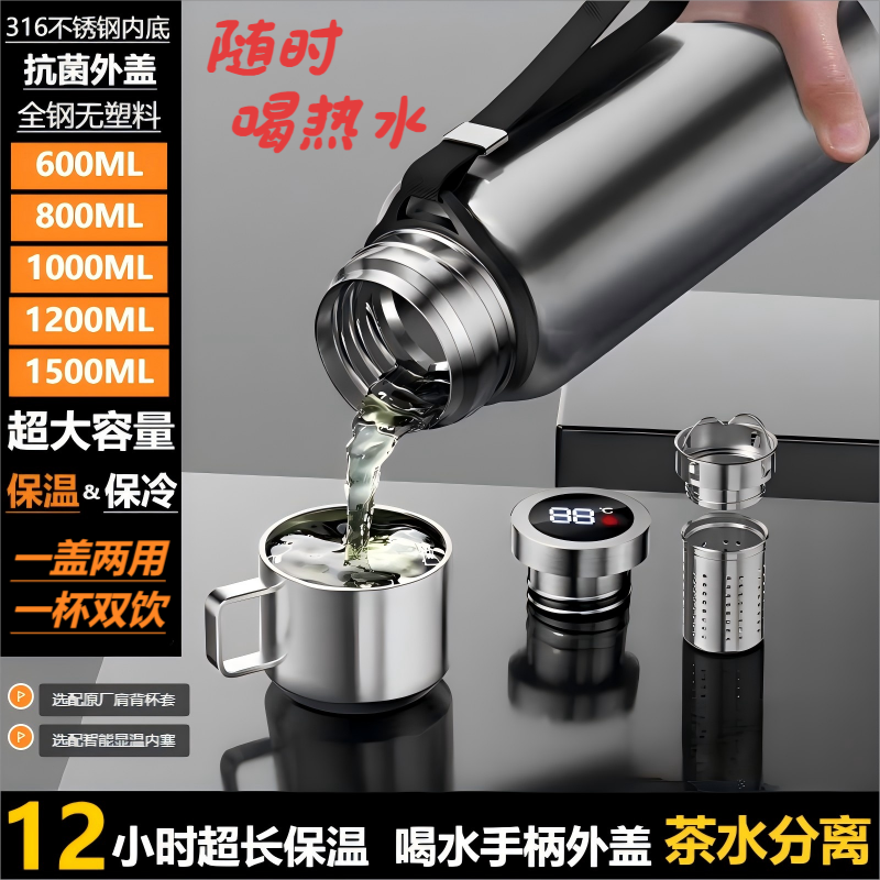 316不锈钢保温杯男款大容量全钢杯茶水分离焖泡茶杯车载运动水壶