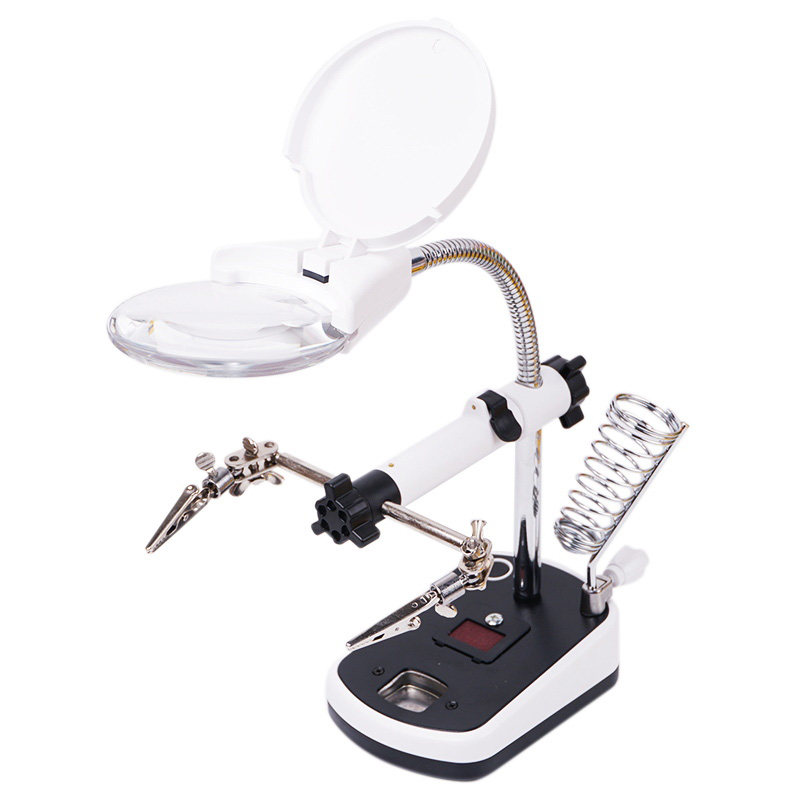 拜斯特台式放大镜维修专用高清带led灯焊接台带烙铁架万象夹子