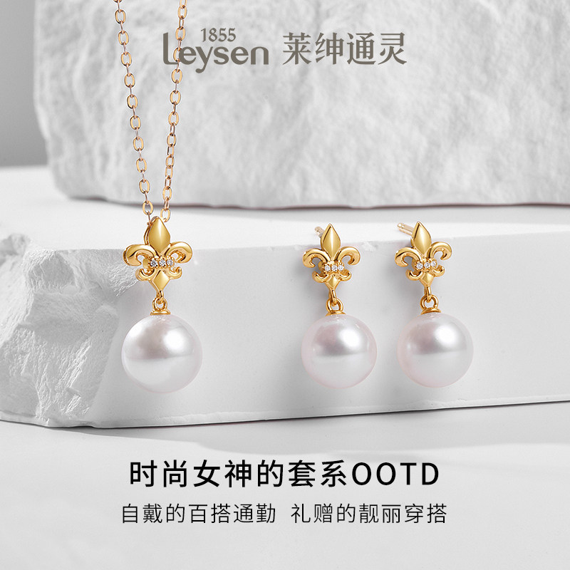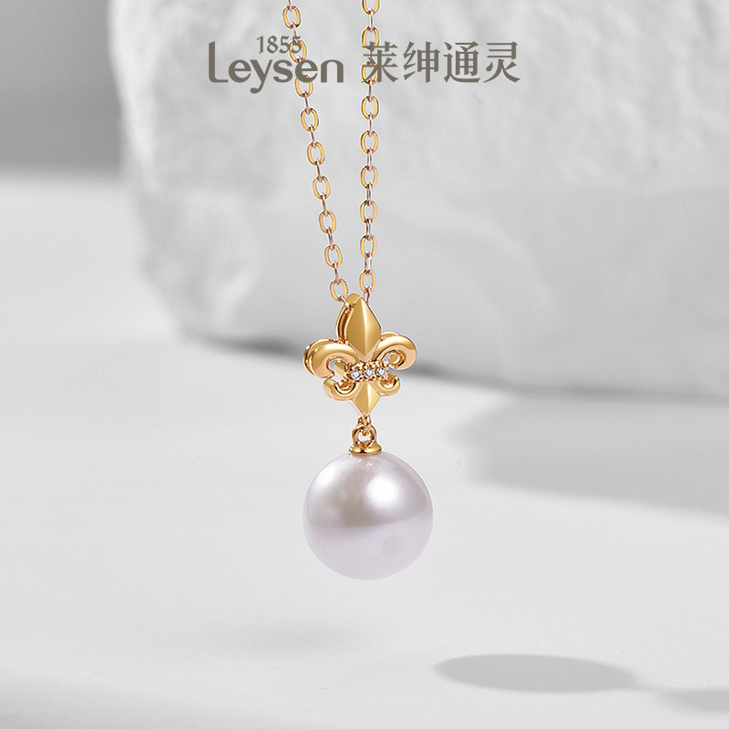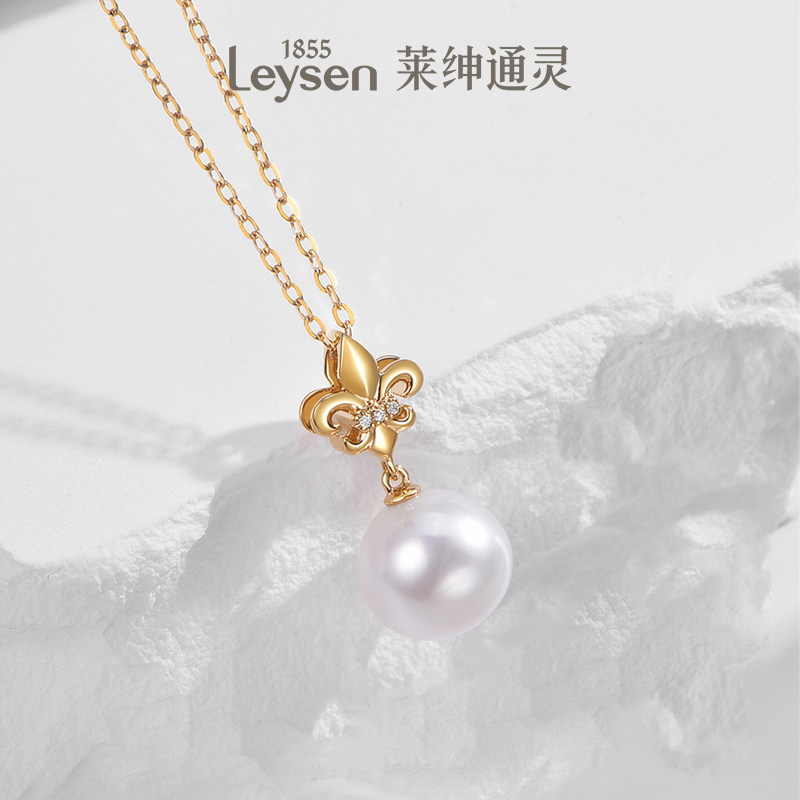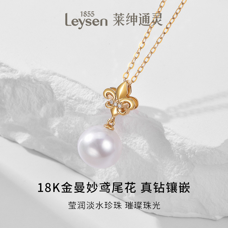 莱绅通灵珠宝 鸢尾花 18K金钻石淡水珍珠项链吊坠