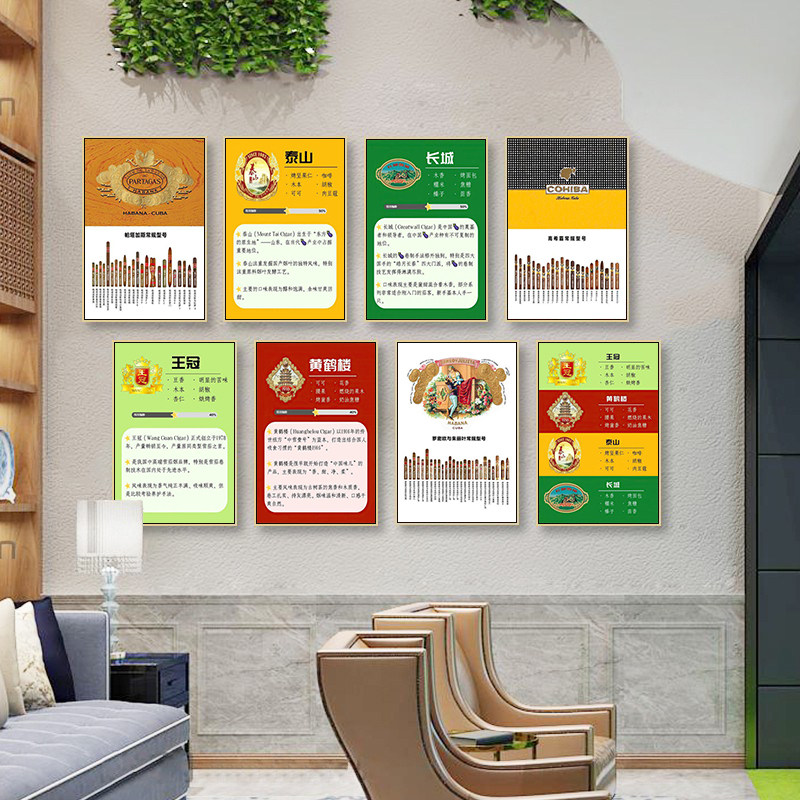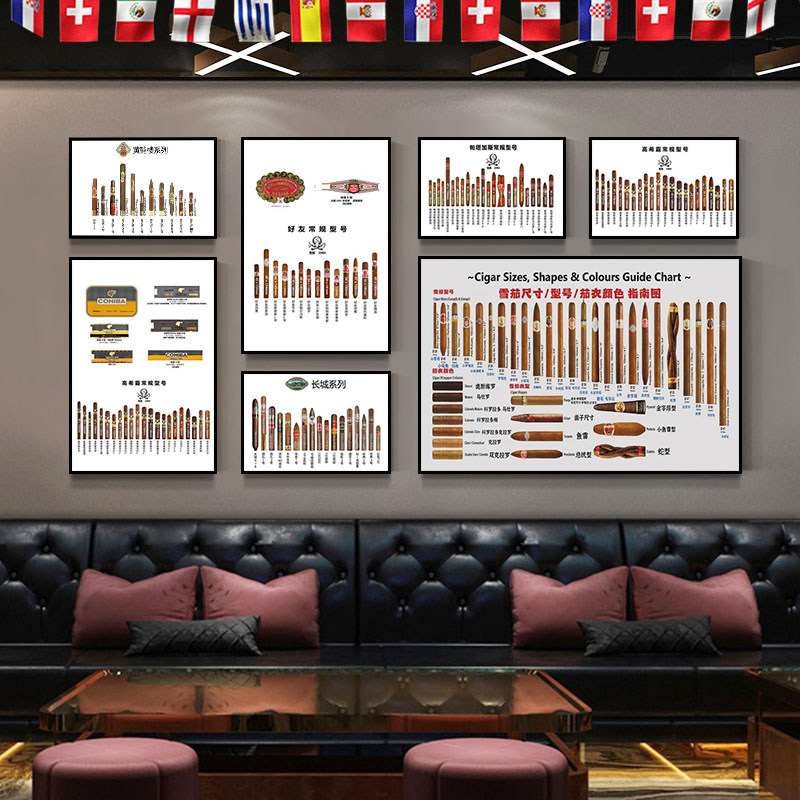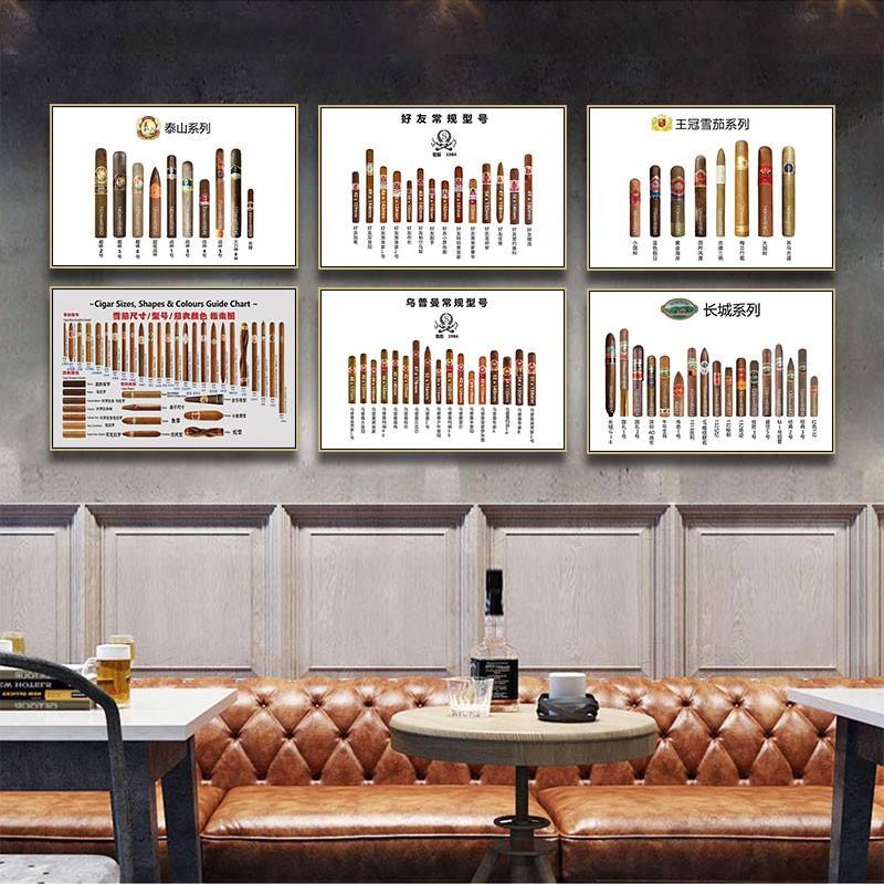 雪茄吧装饰画酒吧烟酒行香烟标签品牌型号挂画美式复古工业风壁画