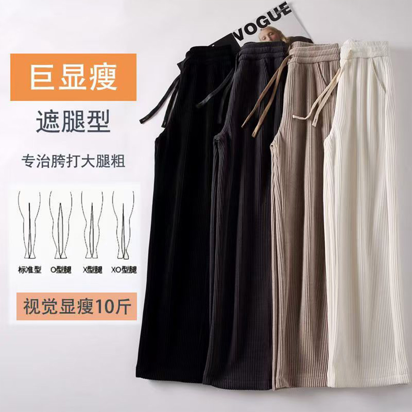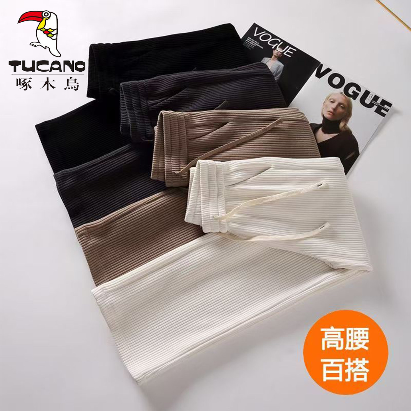 啄木鸟雪尼尔休闲阔腿裤女秋冬新款条绒直筒裤百搭显瘦灯芯绒长裤
