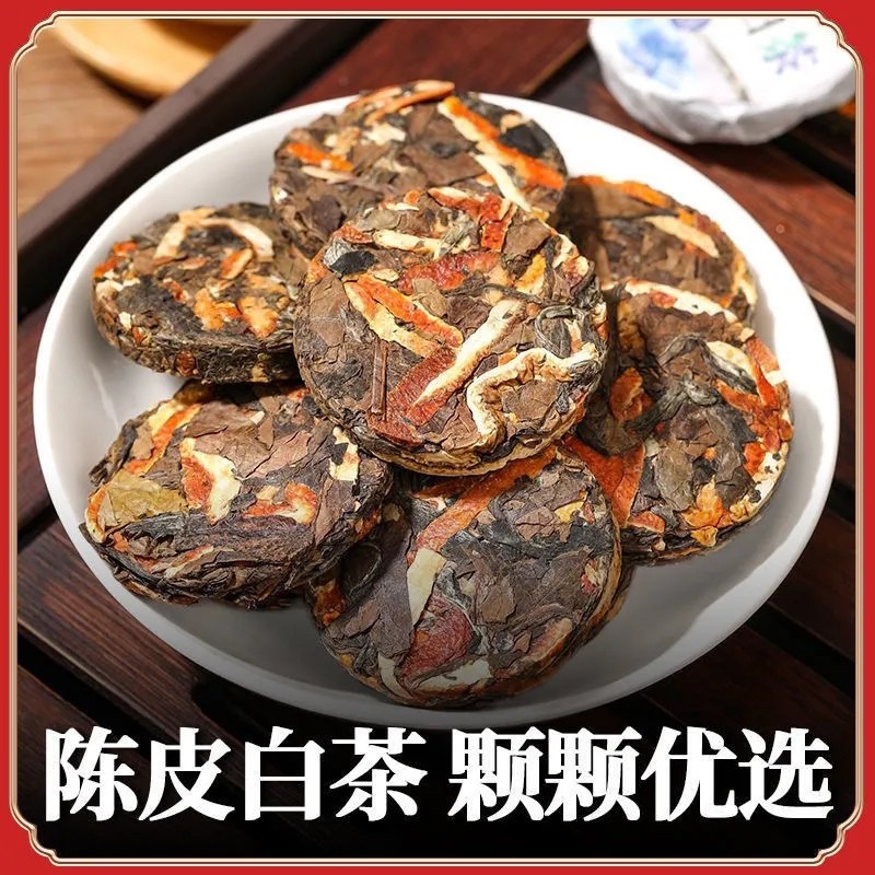 陈皮白茶正宗福鼎老白茶寿眉贡眉小饼茶独立小包装自己喝50克罐装