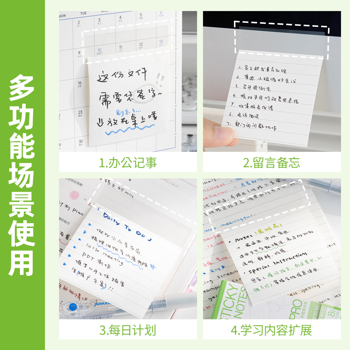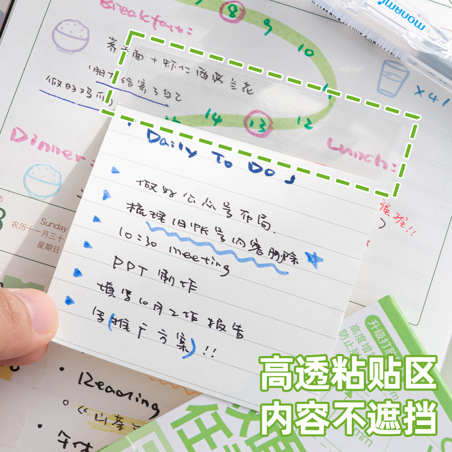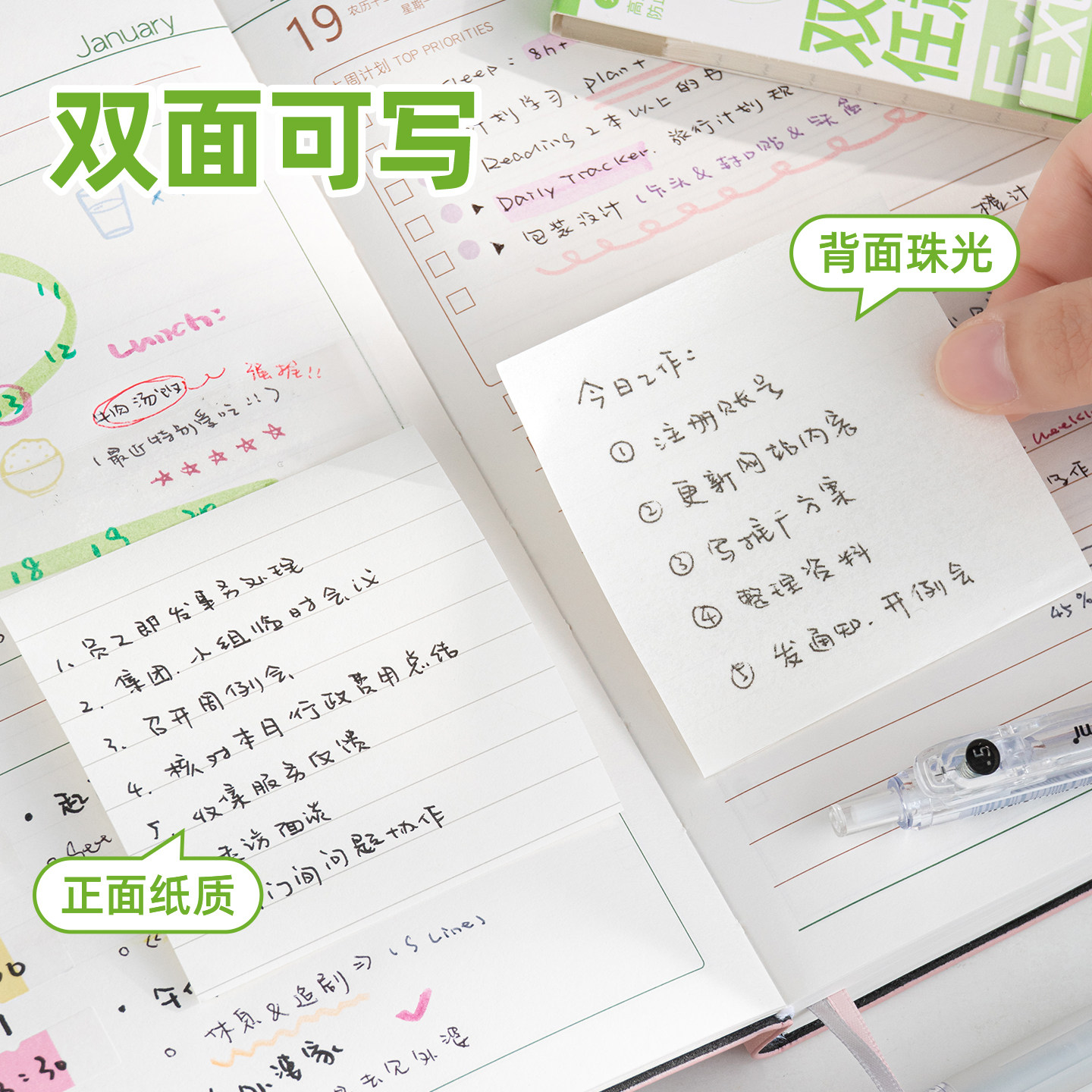 三年二班 任意贴便利贴办公用有粘性便签贴纸透明便签本初中生专用高中每日计划工作记事贴索引贴大号扩张贴