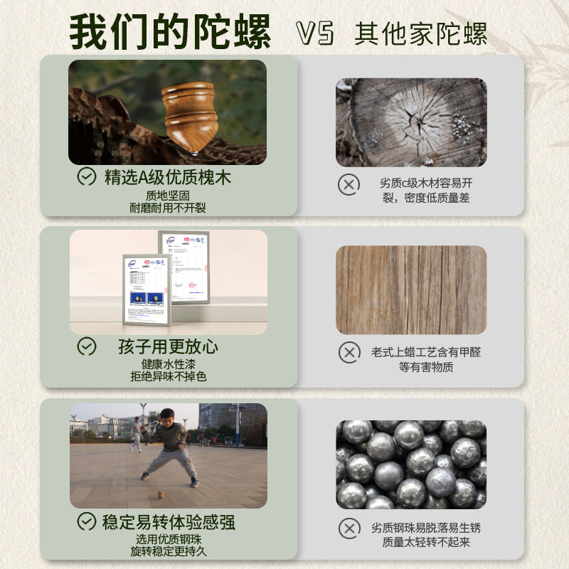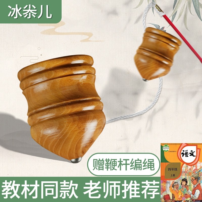 实木陀螺儿童抽陀螺成人健身老式木头冰嘎陀螺冰尜儿带鞭杆鞭绳子