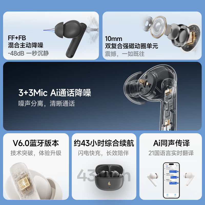 漫步者X5Evo蓝牙耳机主动降噪入耳式运动同声传译男女生礼物新款
