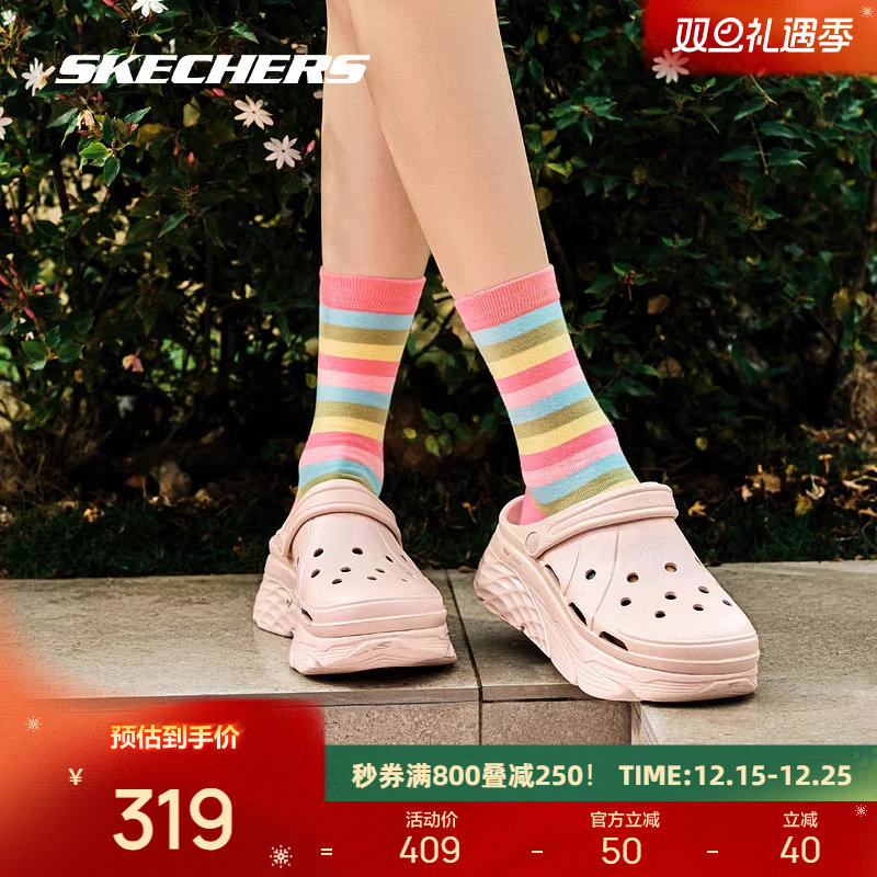 斯凯奇细闪洞洞鞋女子新款厚底休闲鞋运动沙滩凉鞋舒适百搭