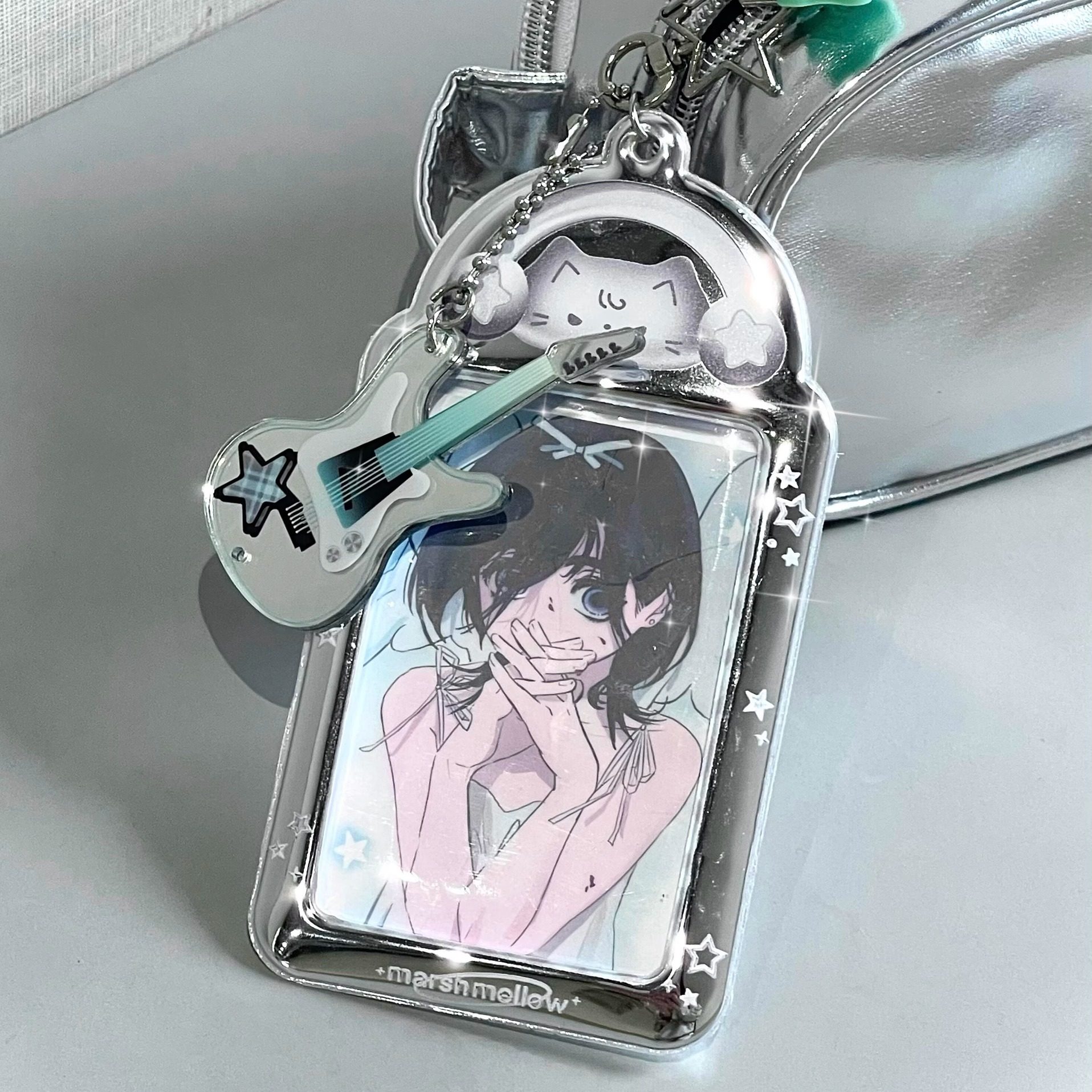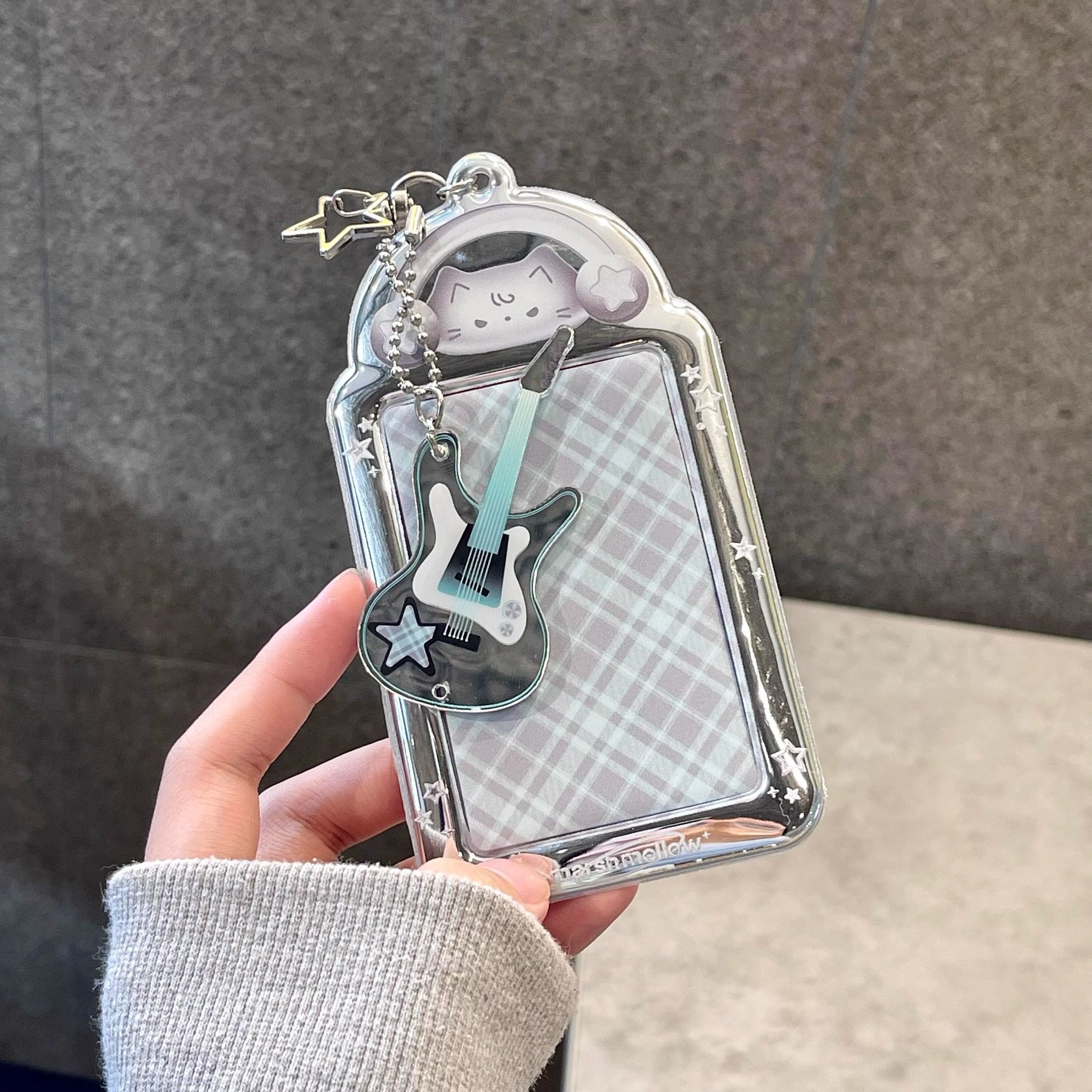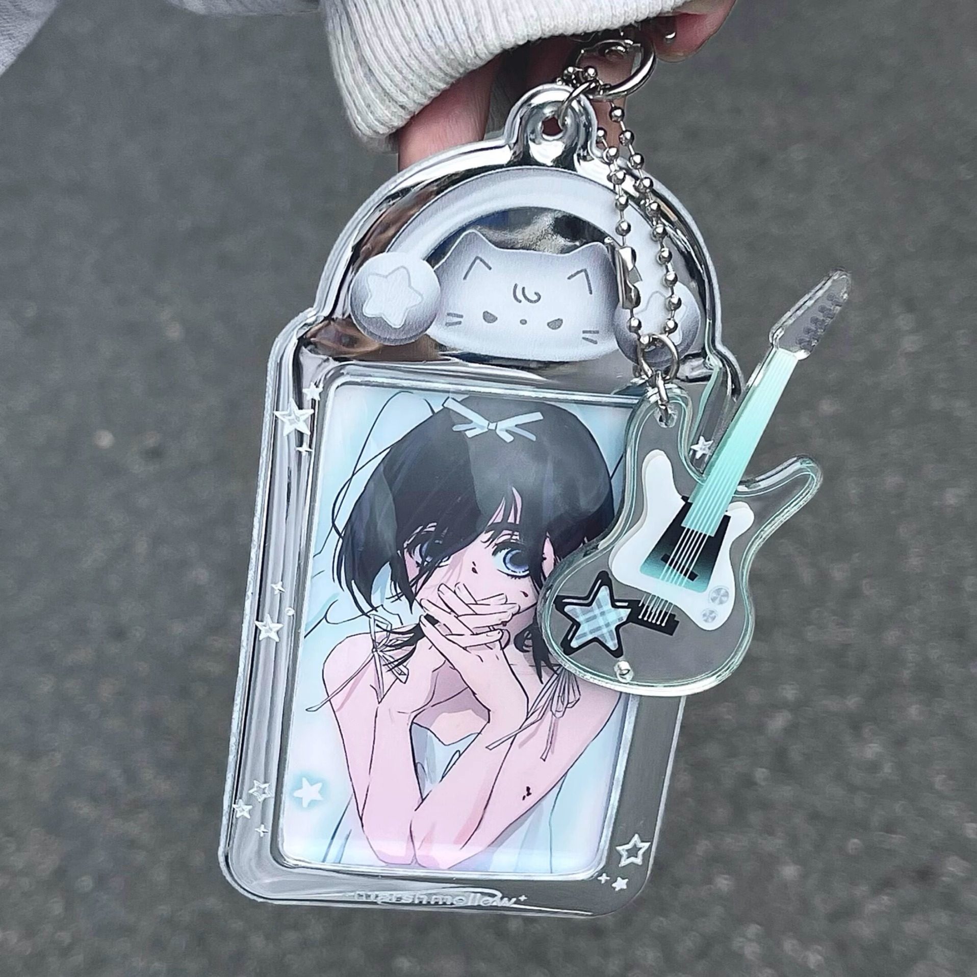 韩系ins风摇滚贝斯小猫卡套pvc无属性3寸小卡拍立得收纳展示挂件