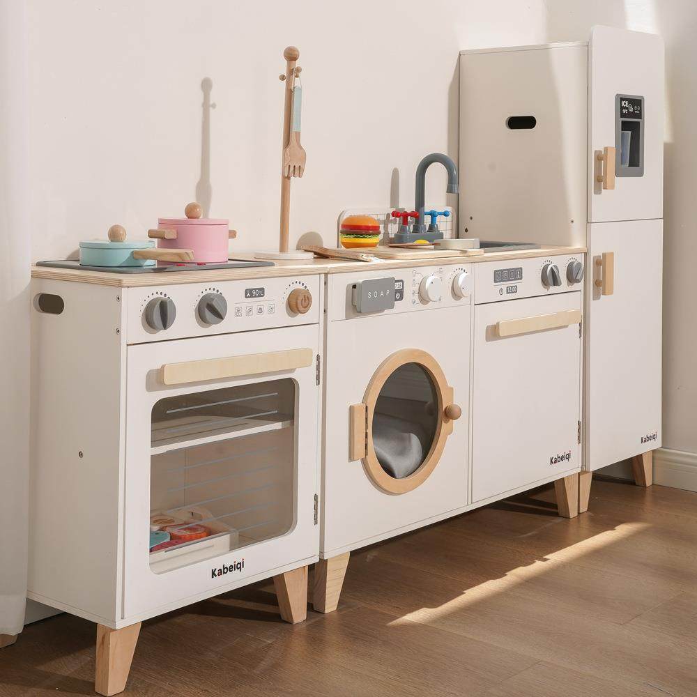 丹麦贵族木制仿真厨房套装玩具带声光亲子互动洗衣机橱柜烤箱冰箱