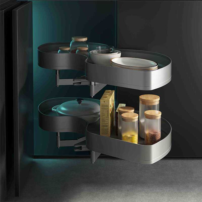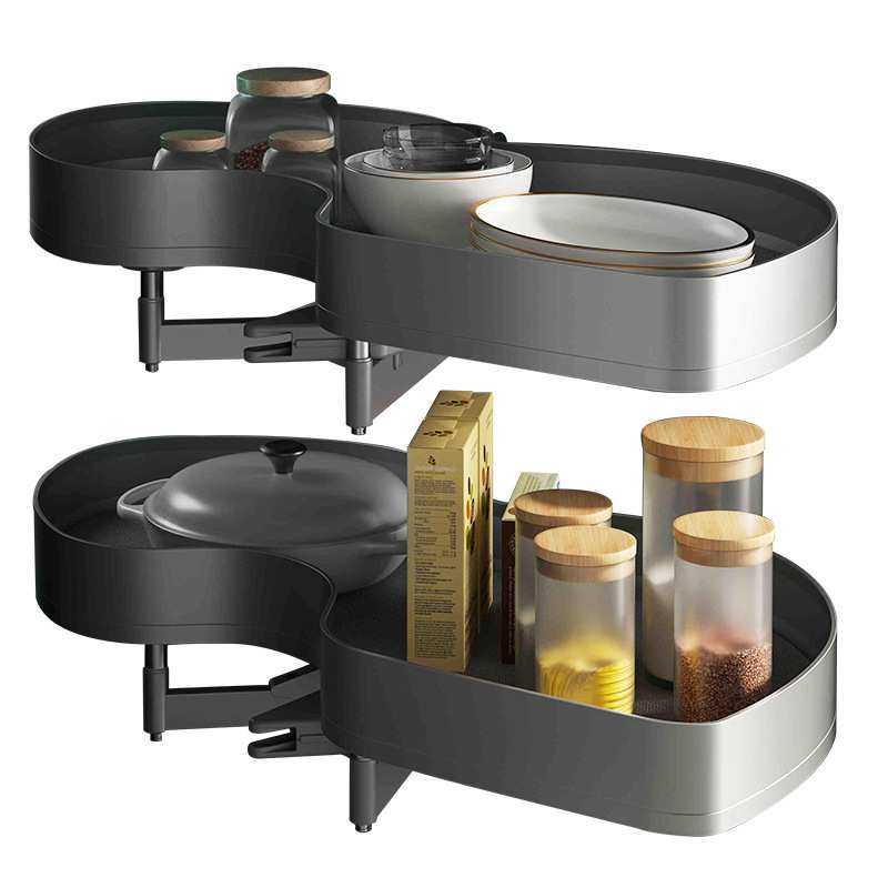 厨房橱柜转角拉篮阻尼旋转收纳置物架拐角飞碟调味篮碗碟架收纳架