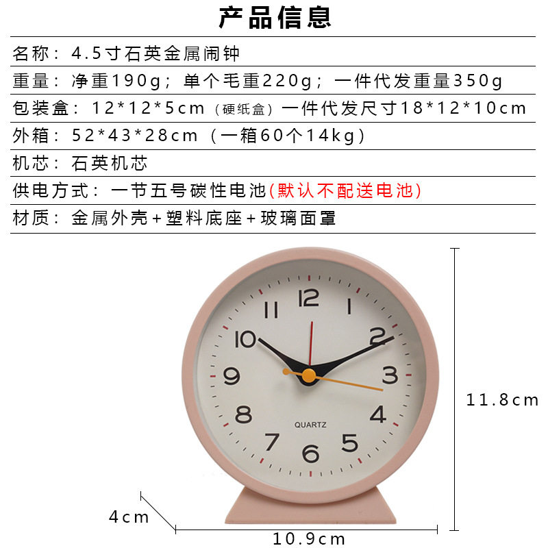 现代简约金属小闹钟儿童创意床头夜光台钟桌面静音学生钟表批发