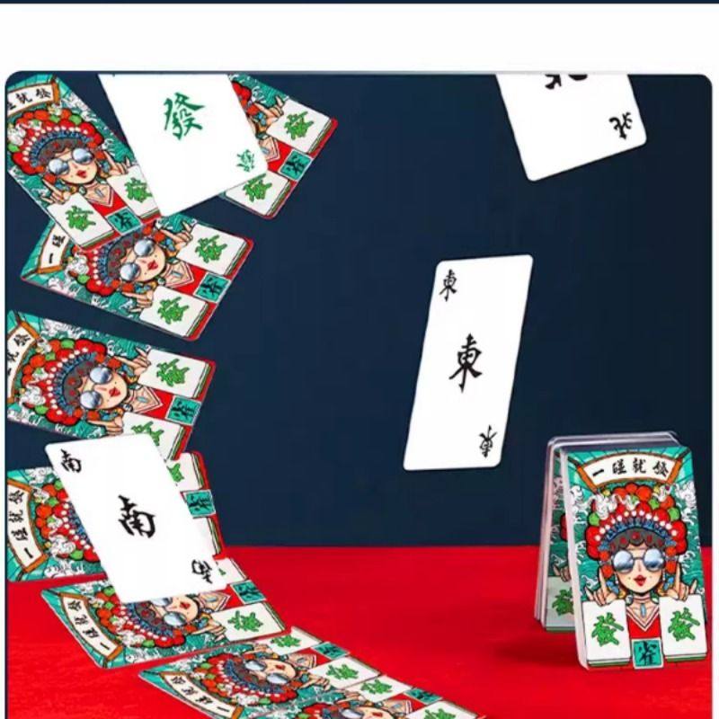 便携式塑料麻将扑克牌家用防水防折专用磨砂加厚耐用旅行纸牌麻将