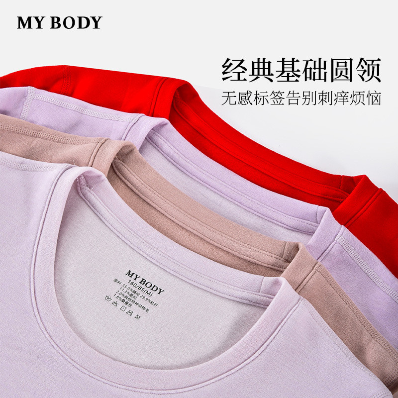 商场同款MYBODY冬季新款保暖内衣女款暖润桑蚕丝基础圆领保暖套裝
