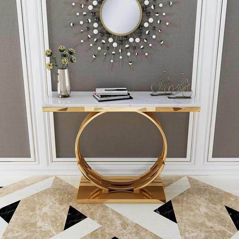 轻奢玄关台简约圆玄关柜现代大理石玄关桌子靠墙不锈钢长条案台