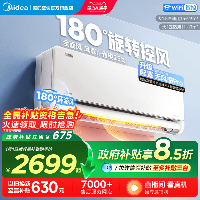 美的风尊二代PRO空调1.5匹2匹一级变频冷暖家用官方正品大挂机
