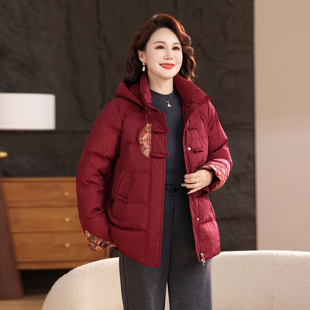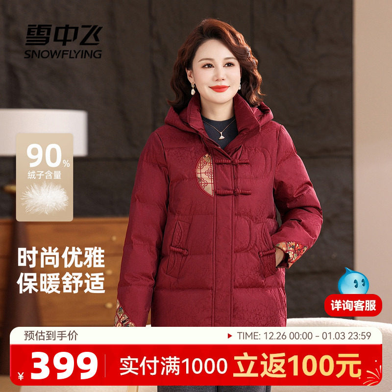 雪中飞2025冬新款女士短款羽绒服妈妈装时尚休闲中老年新中式盘扣