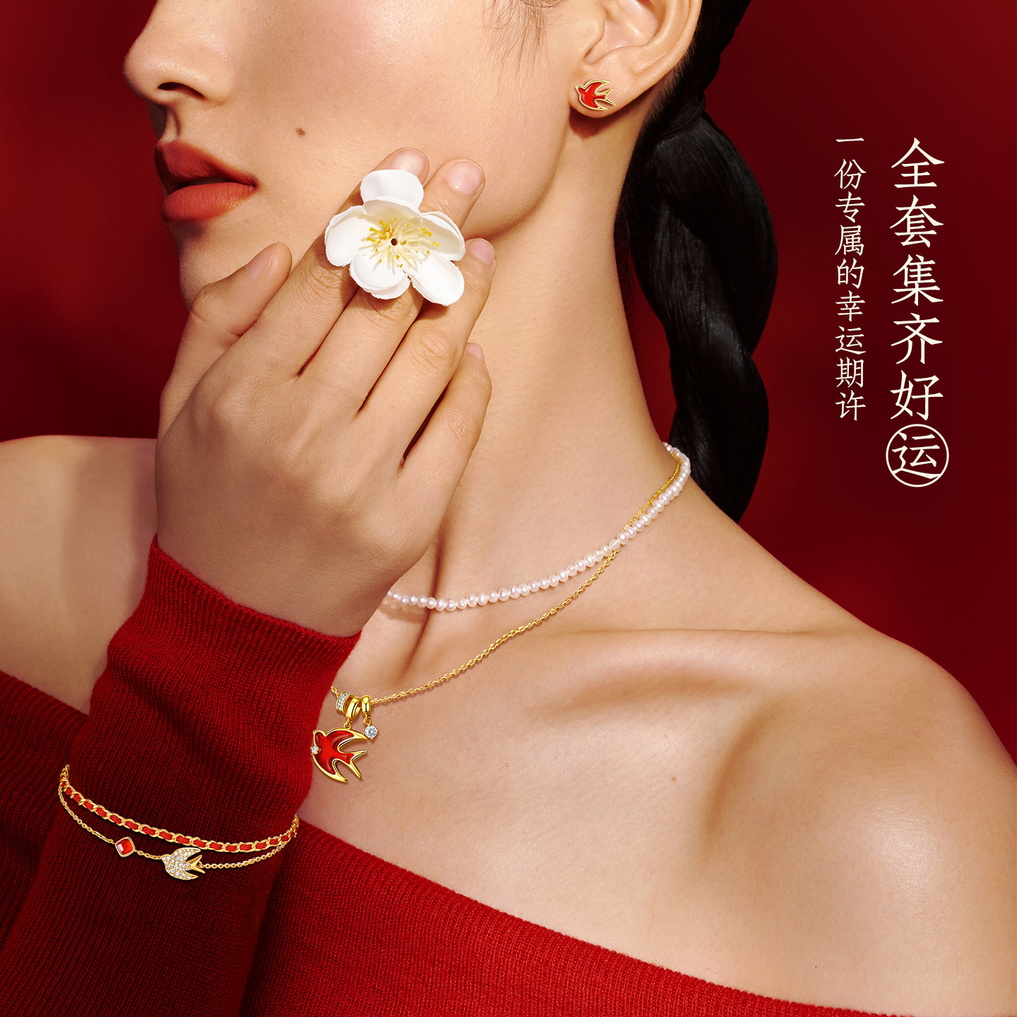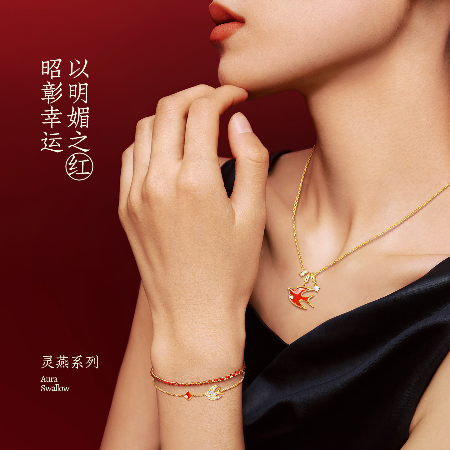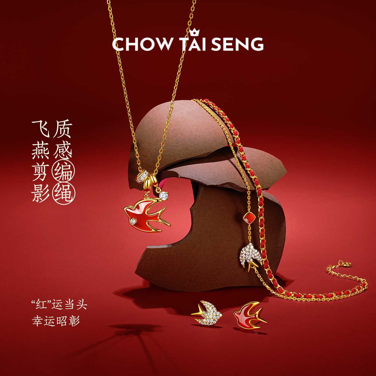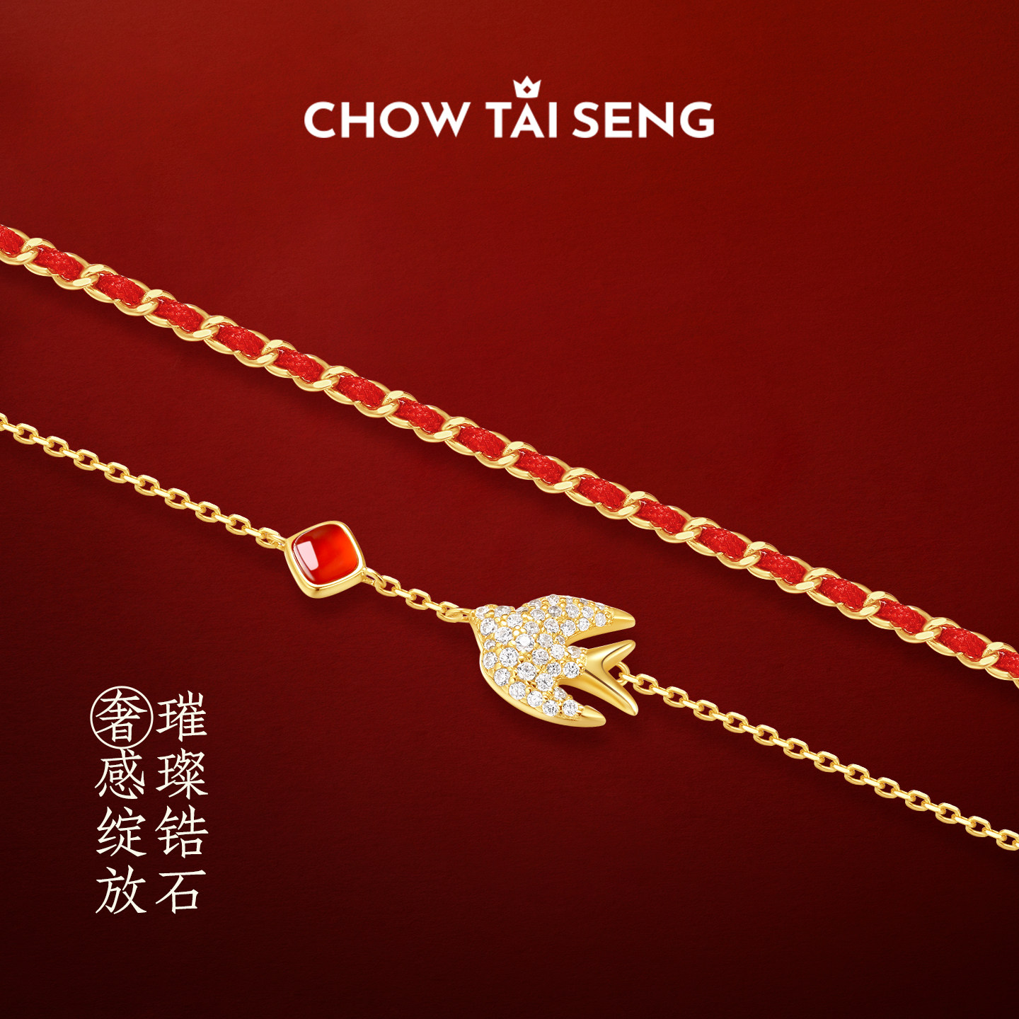 周大生灵燕系列双层叠戴高级感新中式S925红玛瑙手链本命年送女友