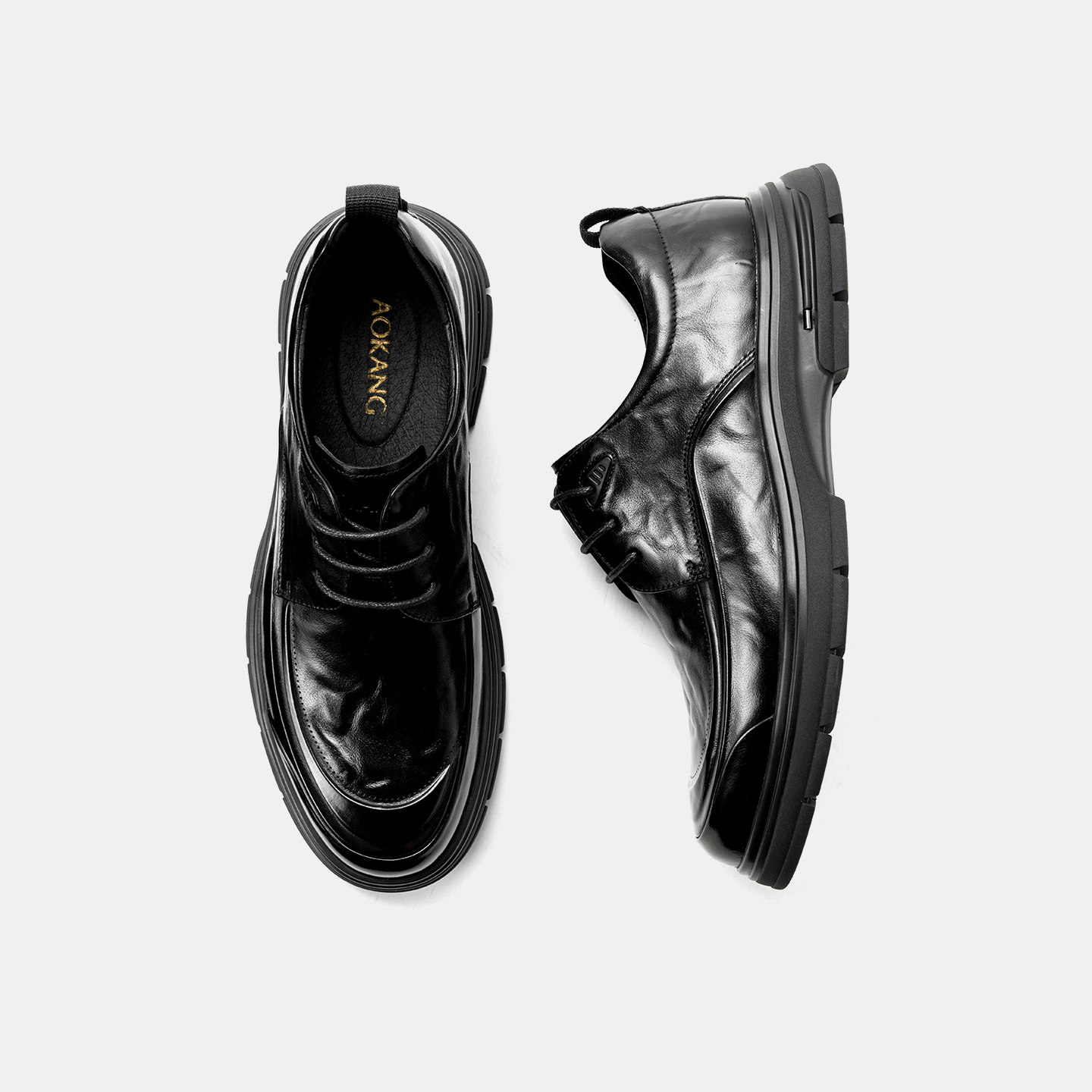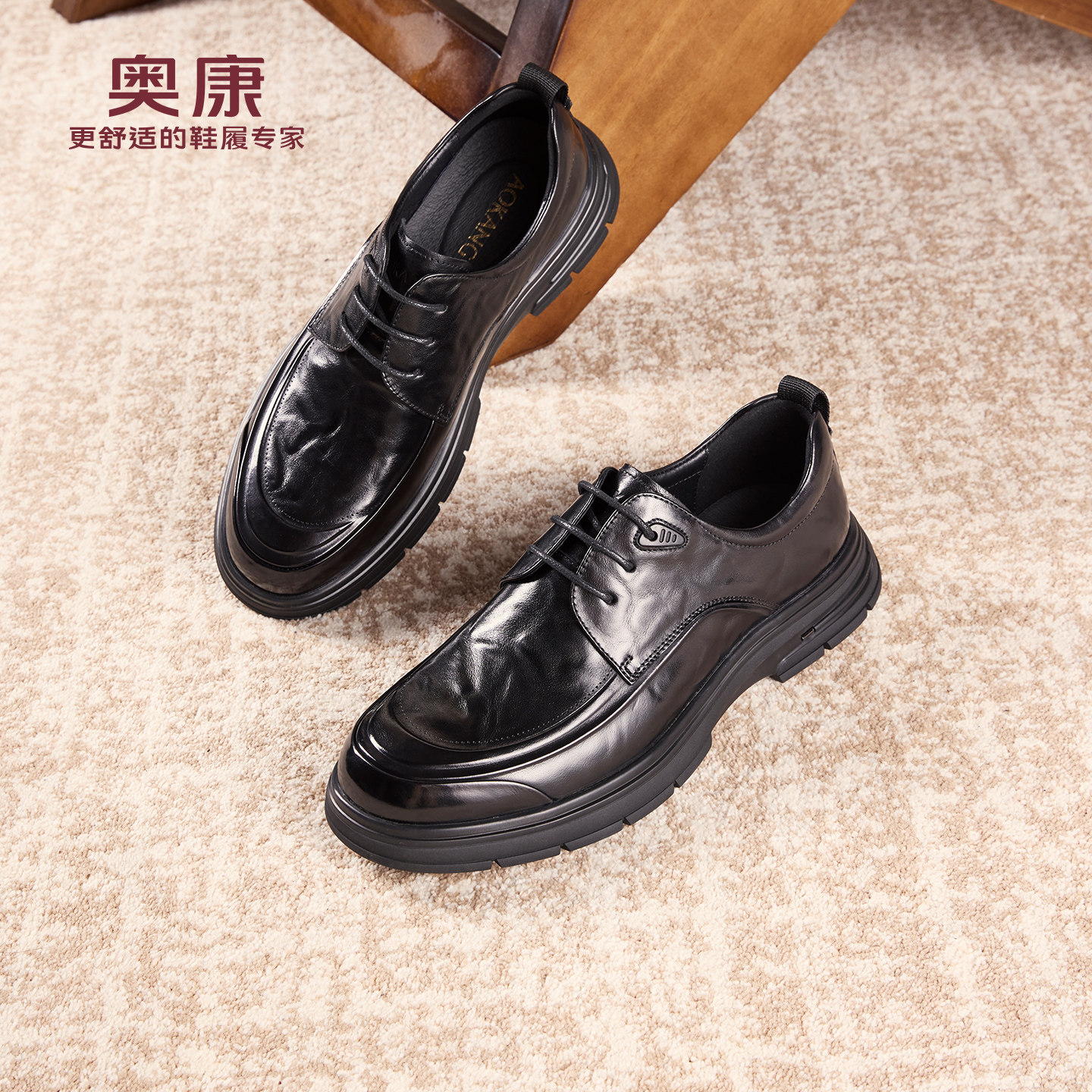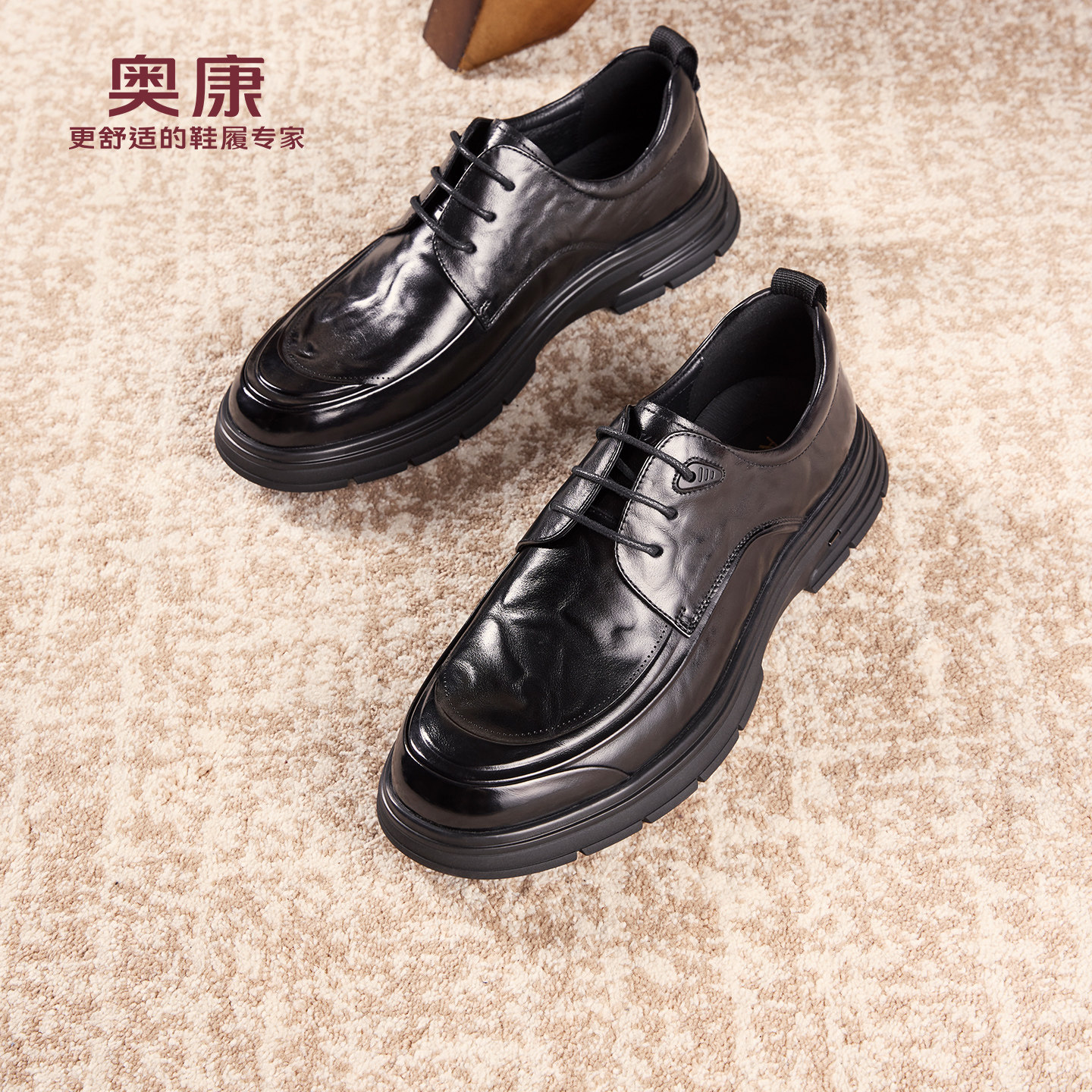 奥康男鞋春秋季时尚商务休闲皮鞋男真皮软面系带办公室百搭爸爸鞋
