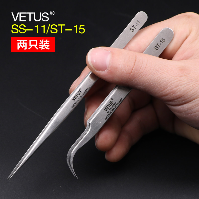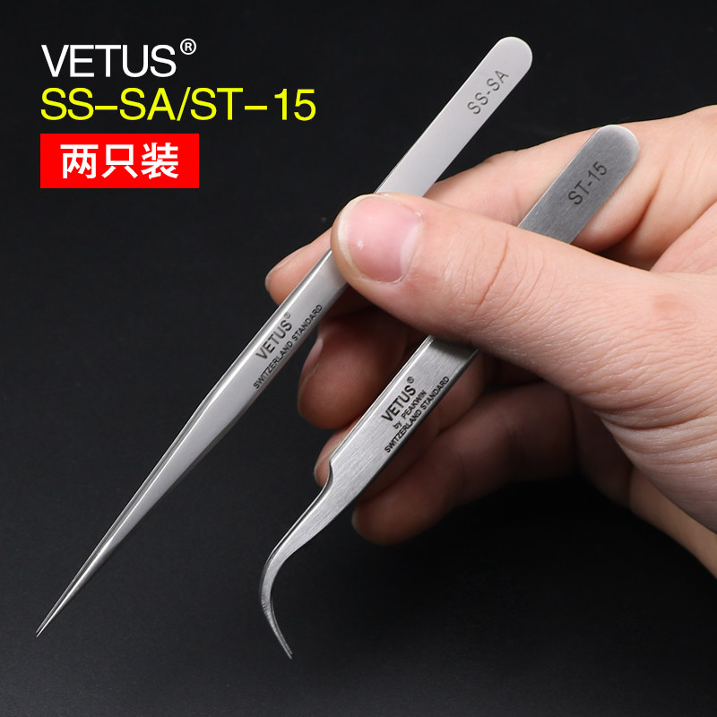 VETUS超硬 特尖弯尖镊子 高精密镊子防静电镊子手机维修工具