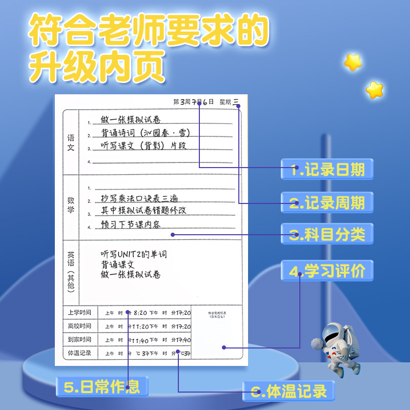 晨光家庭作业登记本抄作业笔记本小学生专用一年级二三四五年级家庭联系本卡通可爱记录本加厚纸张A5抄写本子