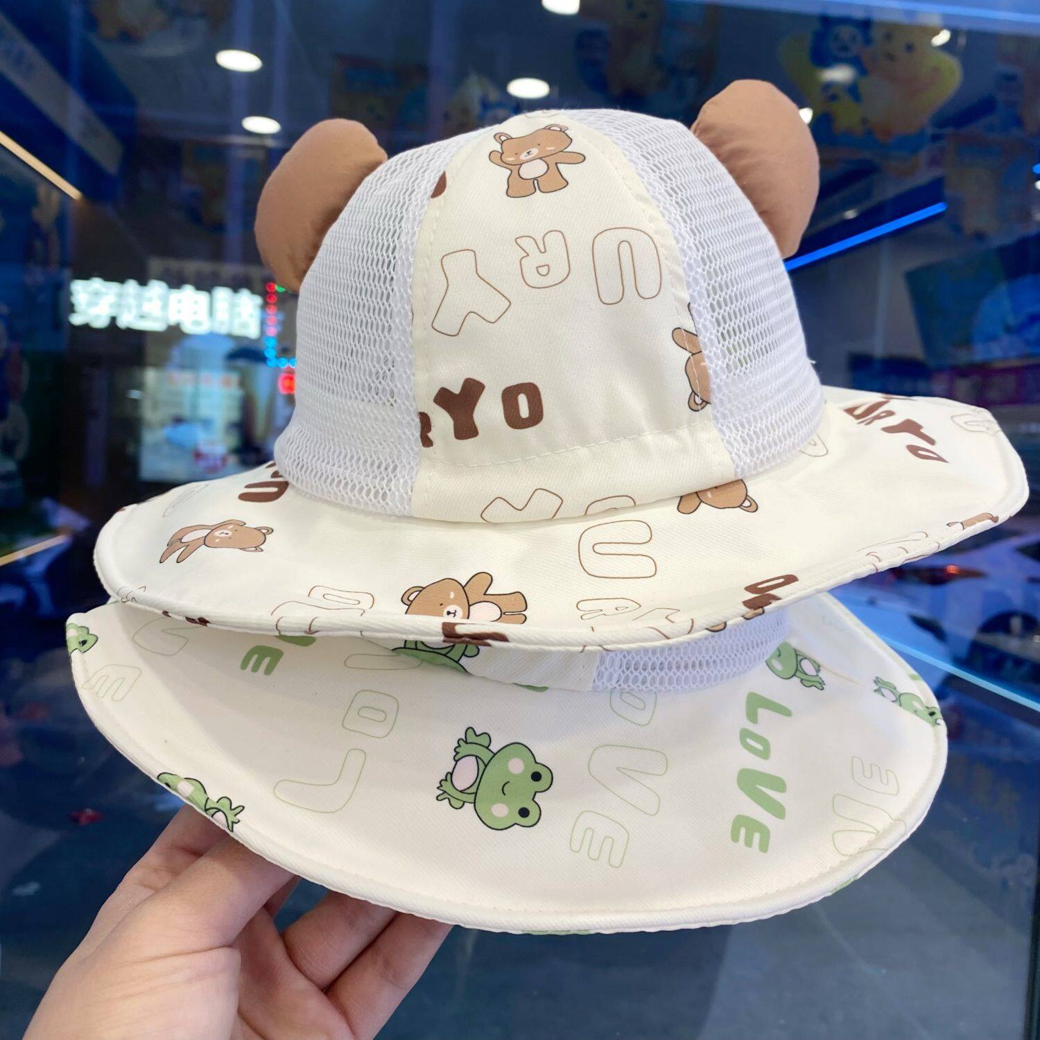 宝宝儿童帽子大檐遮阳帽夏季透气网眼渔夫帽男女童可爱户外太阳帽