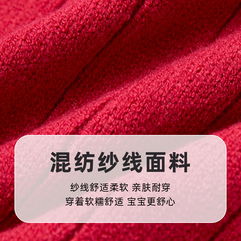 YOUGE幼歌 婴幼儿新中式红色年服甜美乖巧小翻领国风毛衣连衣裙潮