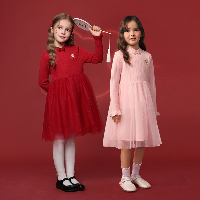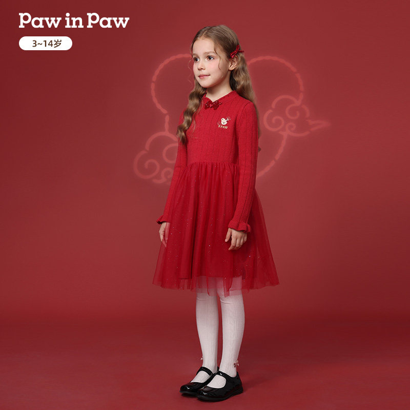 【新年】PawinPaw卡通小熊童装26年新款新中式女童针织连衣裙
