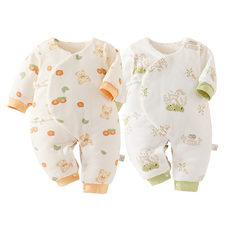 婴幼儿夹棉连体衣秋冬加厚衣服纯棉哈衣爬服新生儿满月宝宝产房衣