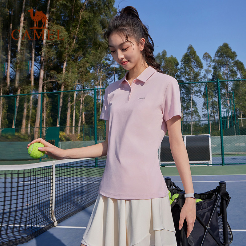 骆驼运动速干polo衫女2025夏季短袖t恤翻领宽松休闲百搭户外上衣