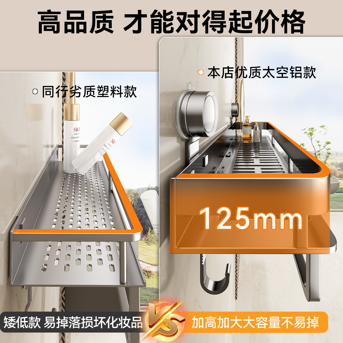 百悍吸盘置物架卫生间浴室角篮挂件免打孔厕所洗漱台收纳壁挂挂架