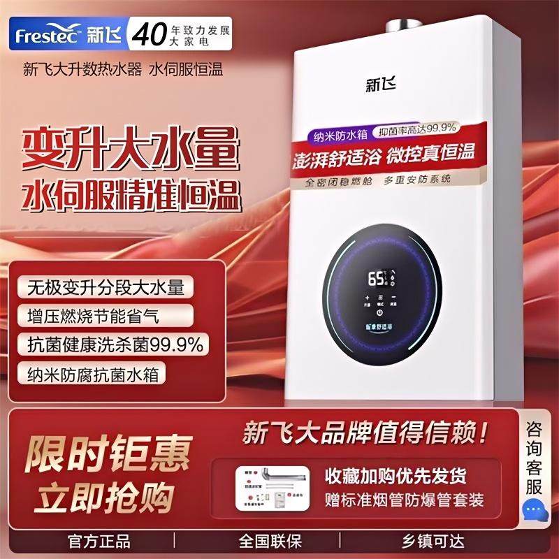 新飞燃气热水器恒温增压零冷水天然气液化气煤气平衡式节能省气