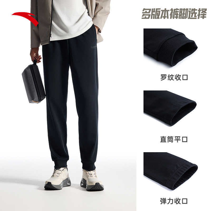 安踏男裤运动裤男冬季新款休闲长裤卫裤束脚宽松透气针织直筒长裤